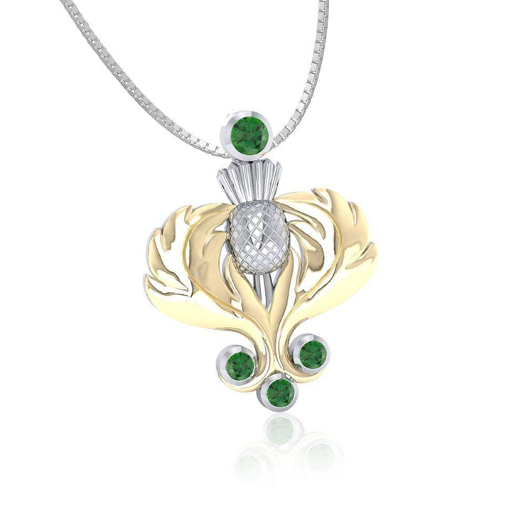 A noble elegance ~ Scottish Thistle Sterling Silver With 18K Gold Accent Pendant And Gemstones MPD682