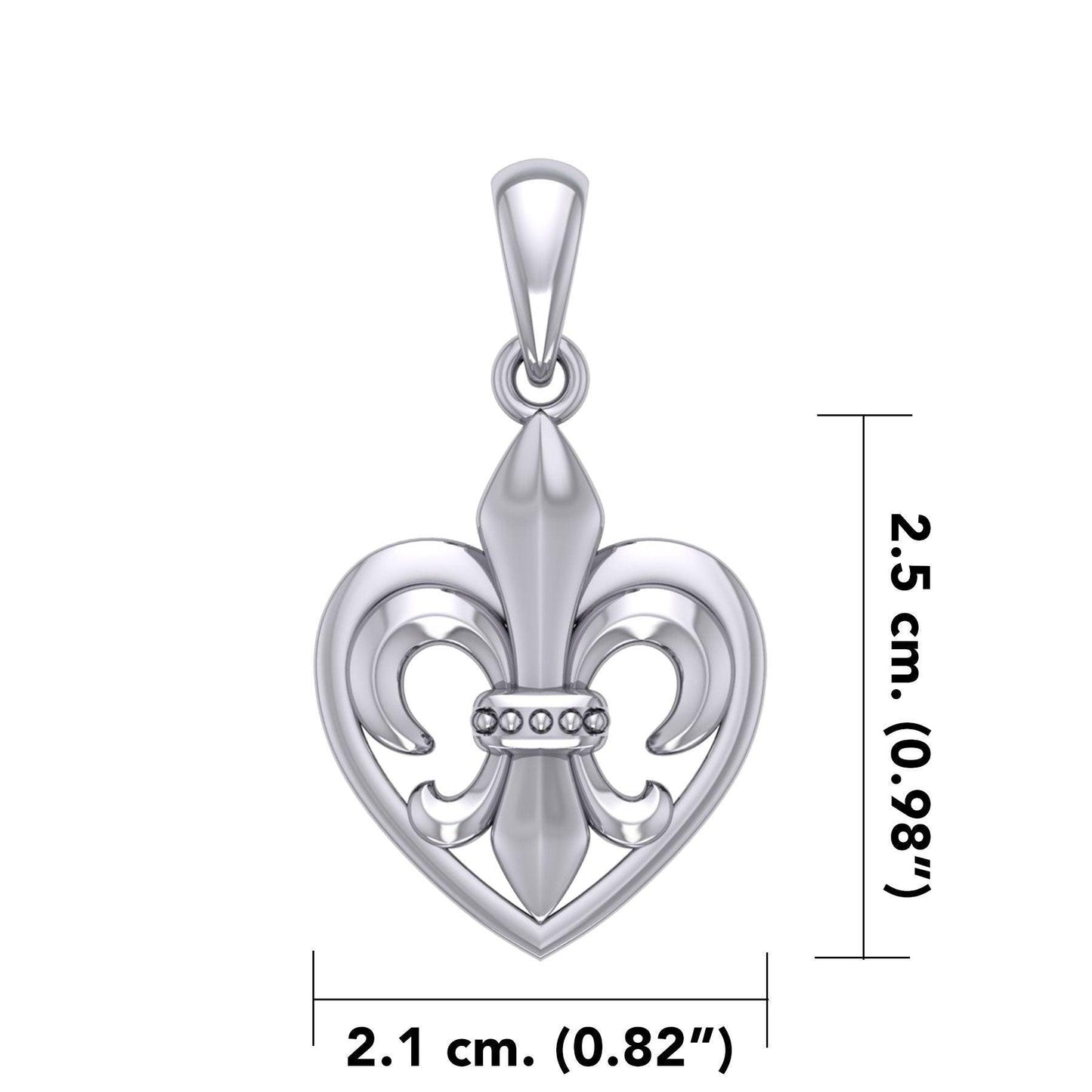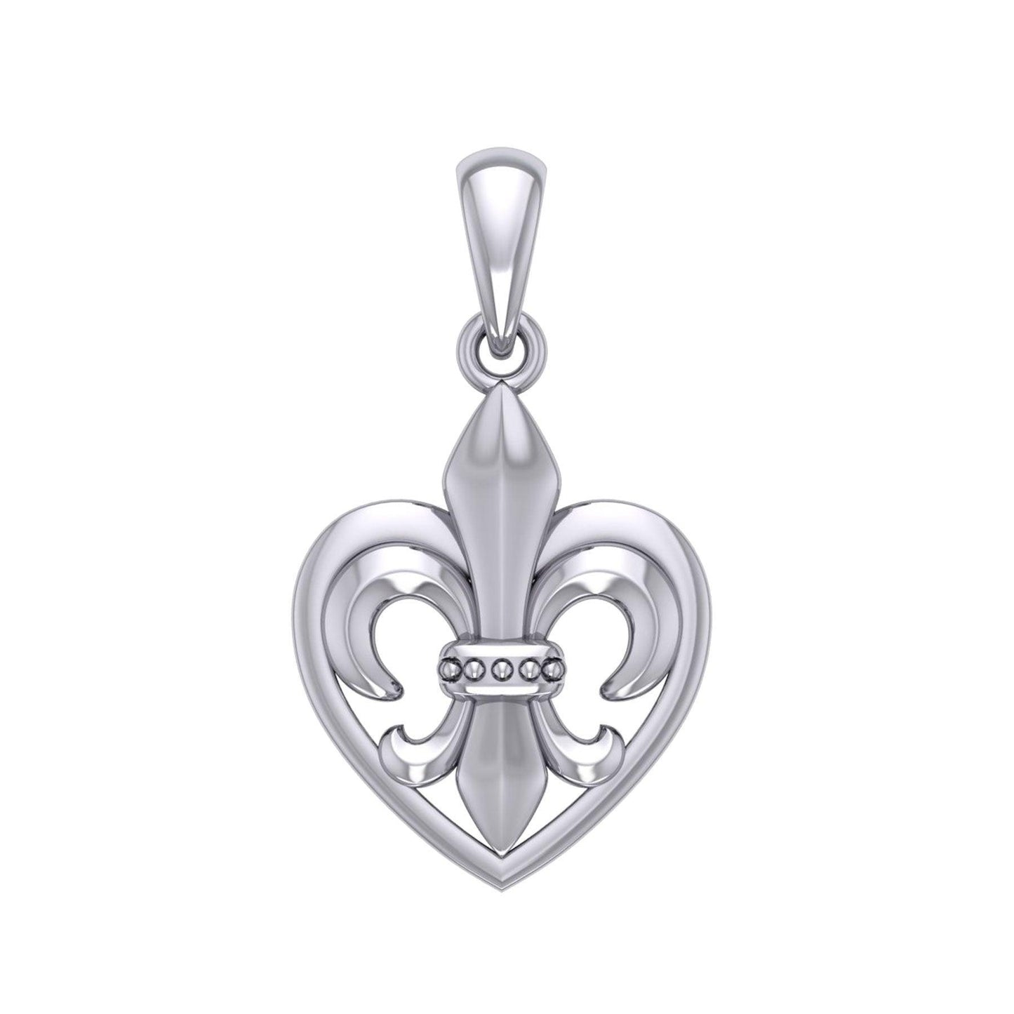 A powerful Sterling Silver Jewelry Pendant in Fleur-de-Lis and Heart TPD6067