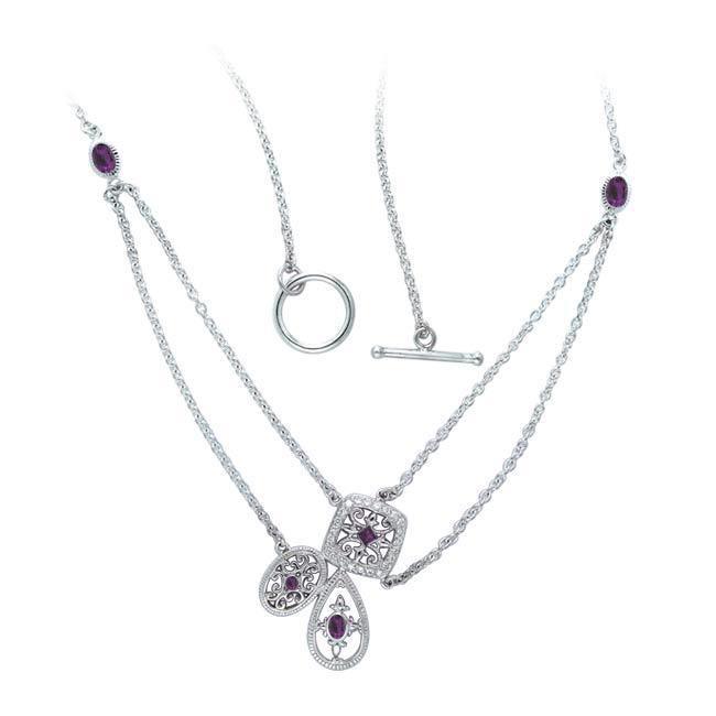 Abstract Elegance Antique Silver Necklace with Gems TNC314