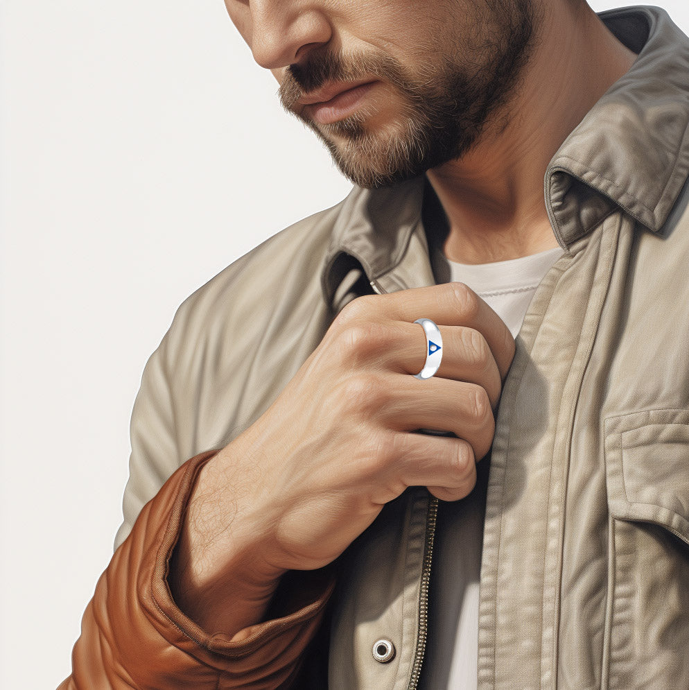 Symbolize strength, unity, and hope with the Al-Anon Sterling Silver Band Ring, a meaningful piece that embodies the spirit of recovery and support. Crafted from .925 sterling silver, this elegant ring features a smooth, polished band adorned with the Al-Anon symbol—a striking blue enamel triangle with a white circular accent at its center. The triangle represents strength and stability, while the circle signifies unity and wholeness, key principles of the Al-Anon community.