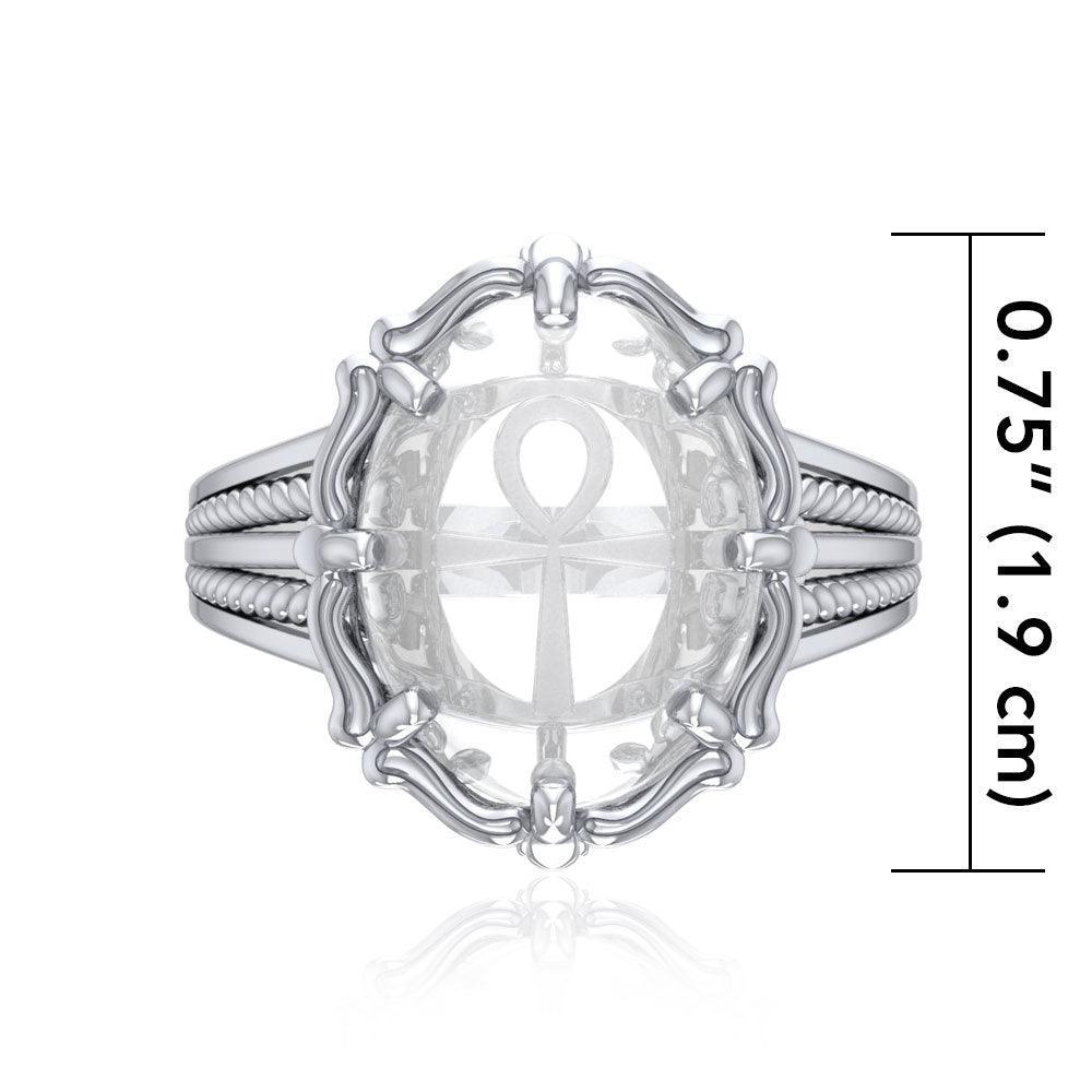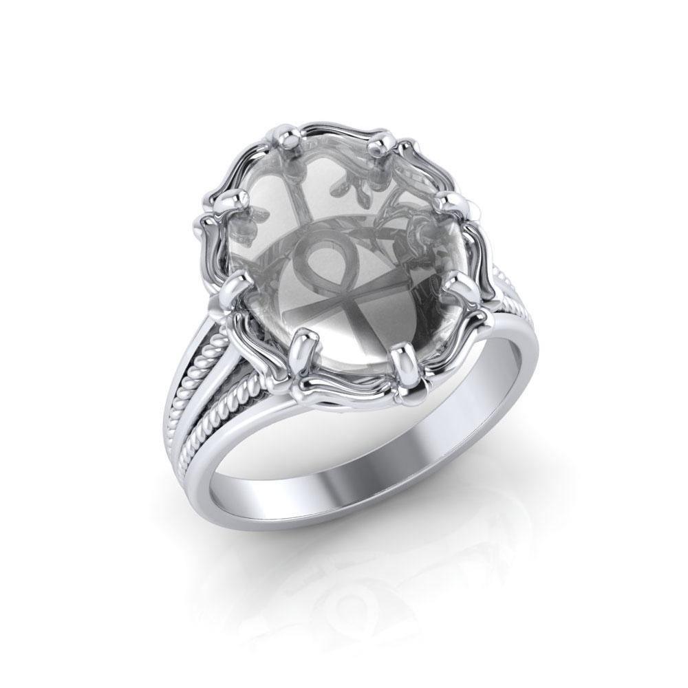 Ankh Sterling Silver Ring with Genuine White Quartz TRI1717