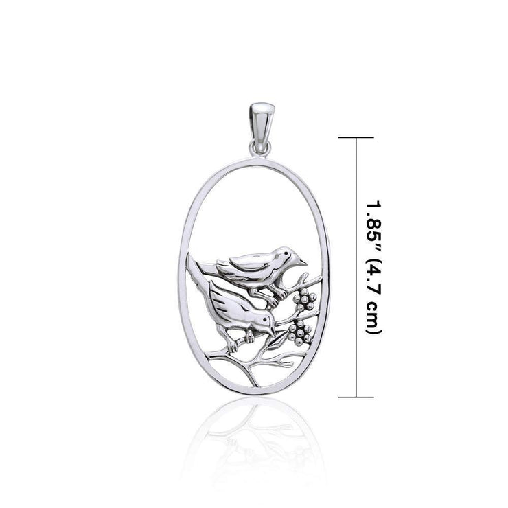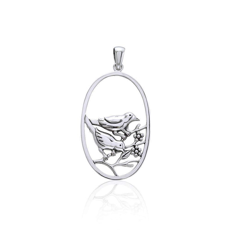 Birds Large Silver Pendant TPD3568 Two birds perch on Spring branches in this large, elegant sterling silver pendant.