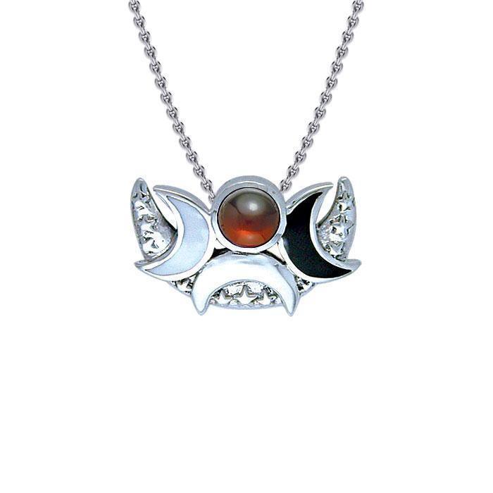 All phases of the lunar cycle are represented in the stunning pendant which is decorated with sparkling stars and your choice of stunning gem.