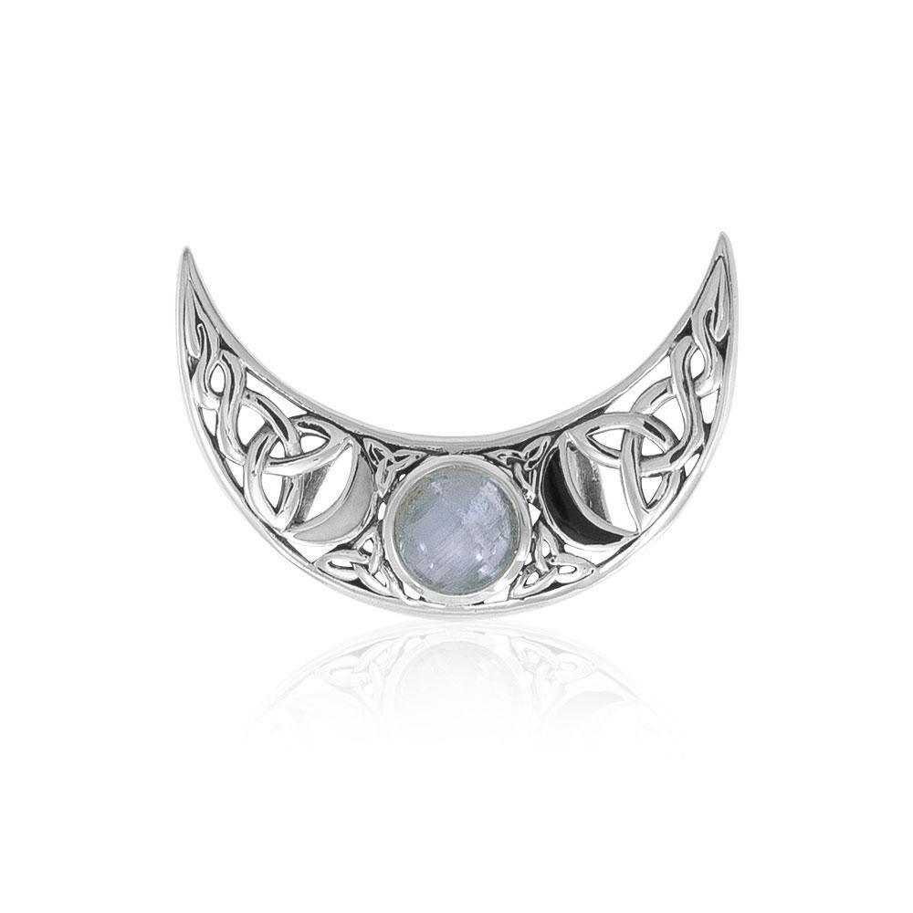 Celtic knots and your choice of gem adorns this beautiful pendant which captures the beauty of the crescent moon.