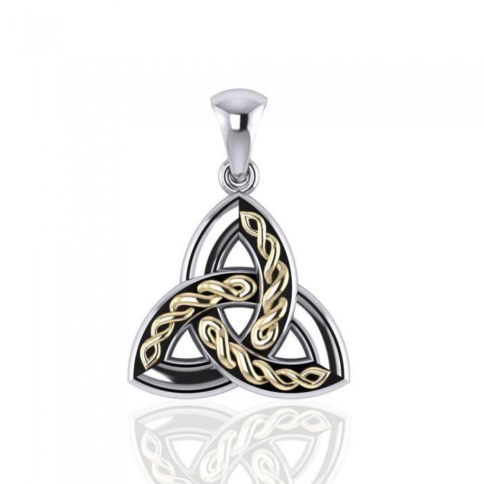 Meticulously crafted from fine sterling silver with 18 karat Gold accents, the Celtic Trinity Silver & Gold Pendant showcases the beauty of Celtic tradition, modern design, and the fine craftsmanship of Peter Stone Artisans.
