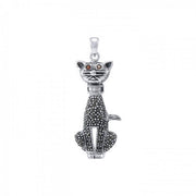This regal, handcrafted sterling silver cat pendant is uniquely designed with Garnet Marcasite gemstone accents in an enchanting celebration of this beloved creature.