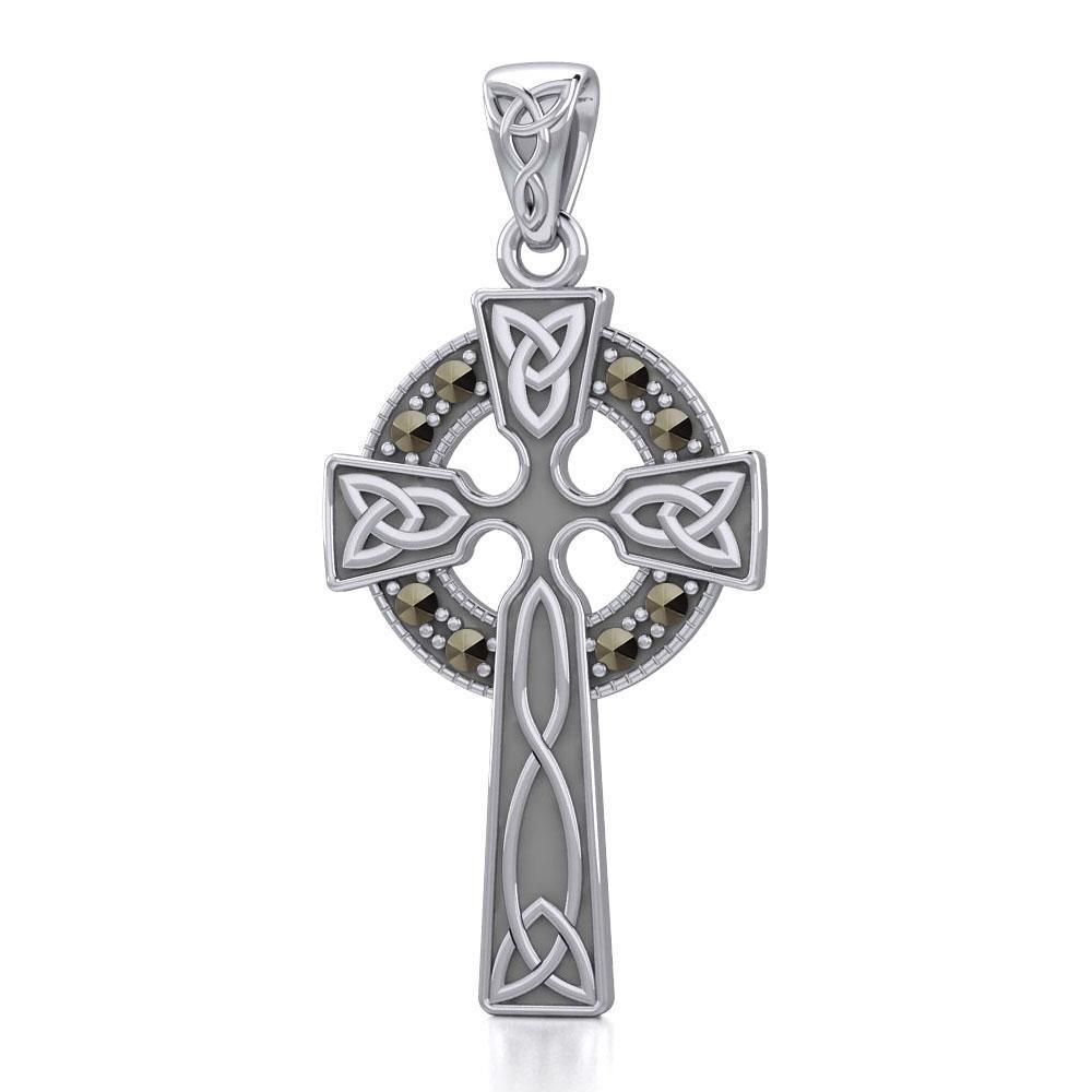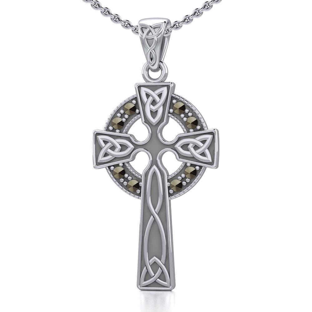 Meticulously crafted from fine sterling silver, the Celtic Cross Silver Pendant with Marcasite showcases the beauty of Celtic tradition and the fine craftsmanship of Peter Stone Artisans.