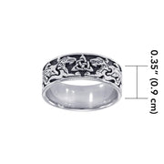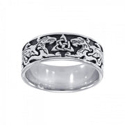 Meticulously crafted from fine sterling silver, the Celtic Dragons Trinity Knot Silver Ring features a detailed inscription and hand-crafted quality from the world class artisans at Peter Stone.