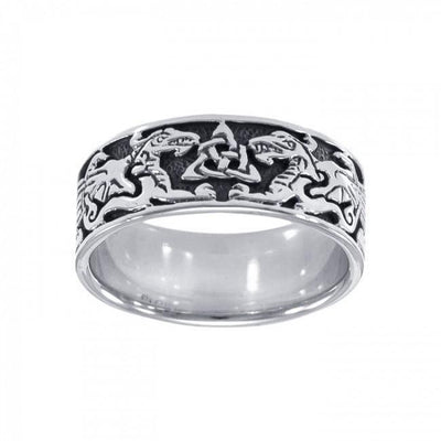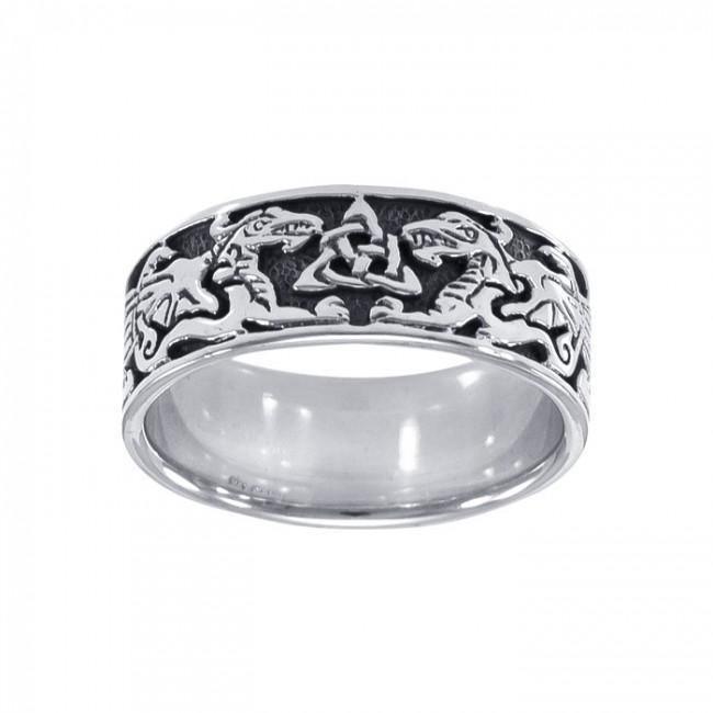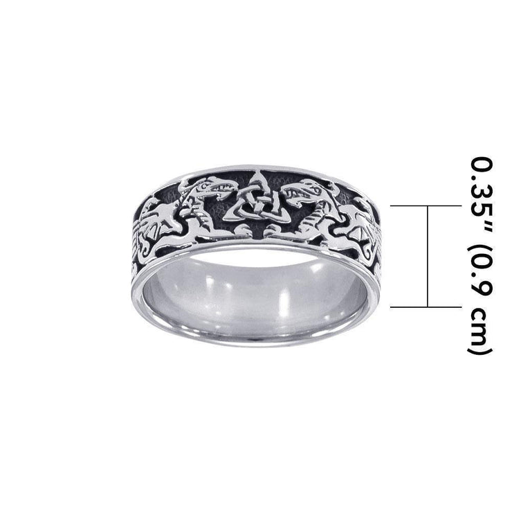 Celtic Dragons Trinity Knot Sterling Silver Ring TR842