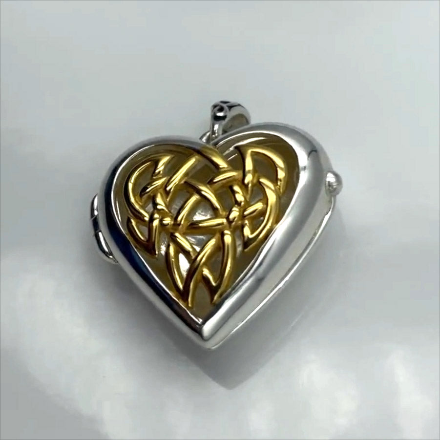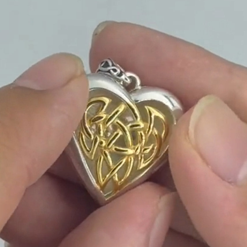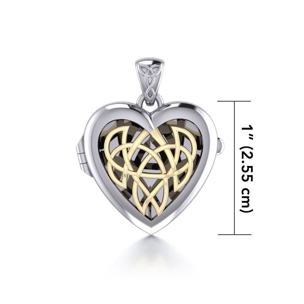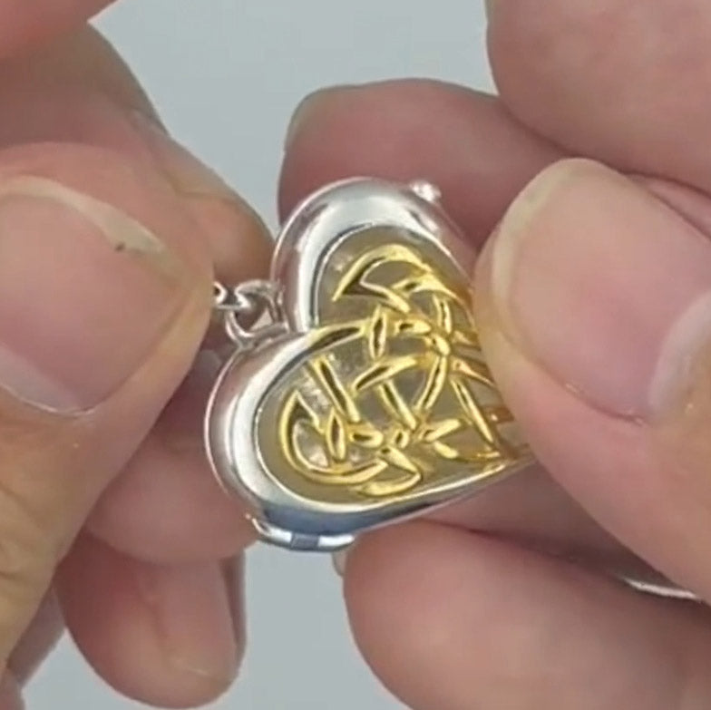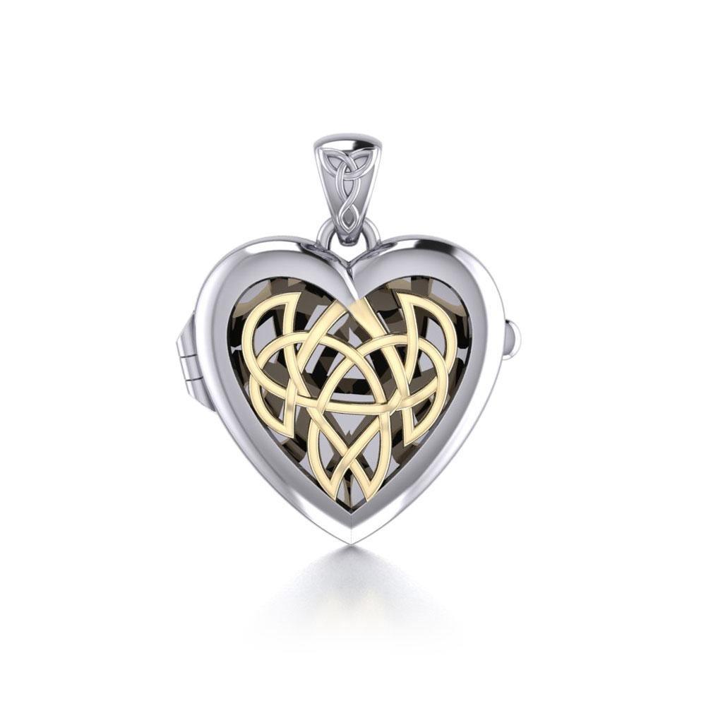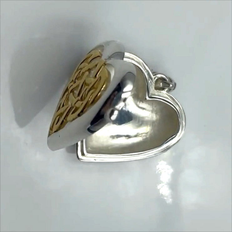 Celtic Heart Aroma Silver and 14K Gold Accent Locket Pendant MPD5040