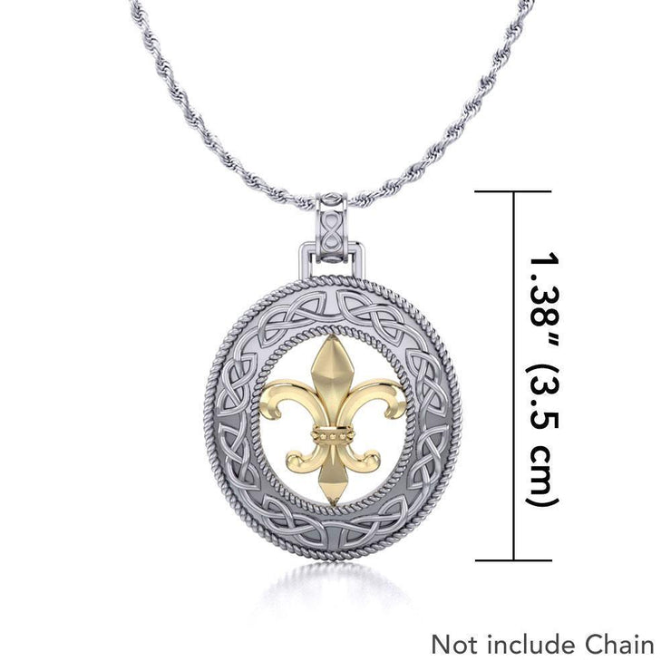 The symbol of nobility ~ Celtic Knotwork Fleur-de-Lis Sterling Silver with 14k Gold Accent Pendant MPD336
