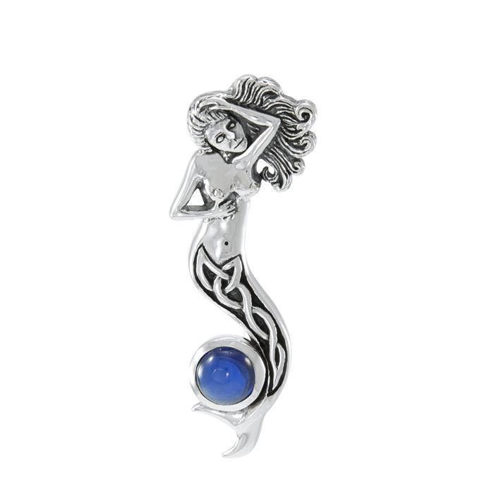 Silver Celtic Mermaid with Gem Pendant TPD079