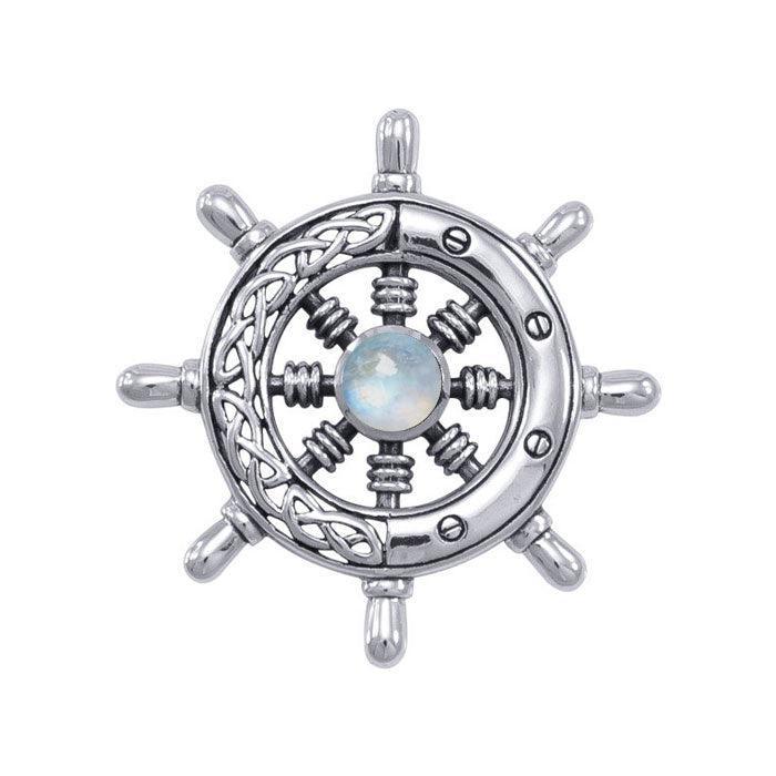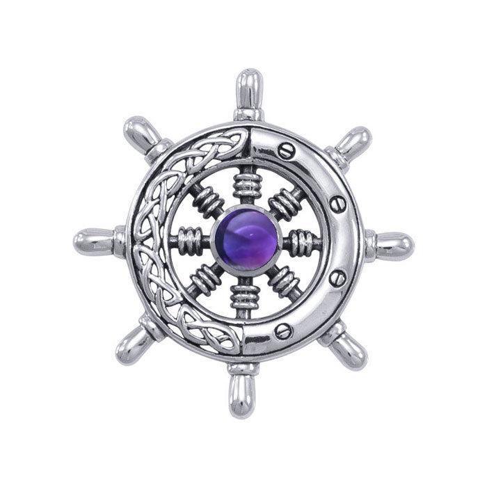 Celtic Knots Ship's Wheel Silver Pendant with Gemstone TPD1028