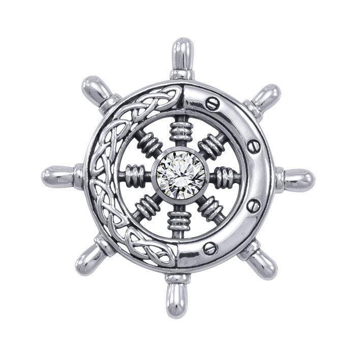 The Horizon can never be met. People have long been captivated with the sea, and the ship's wheel is an iconic symbol of the adventurous nature of man. You can celebrate the adventure of the high sea, with the Celtic Knots Ship's Wheel Silver Pendant.