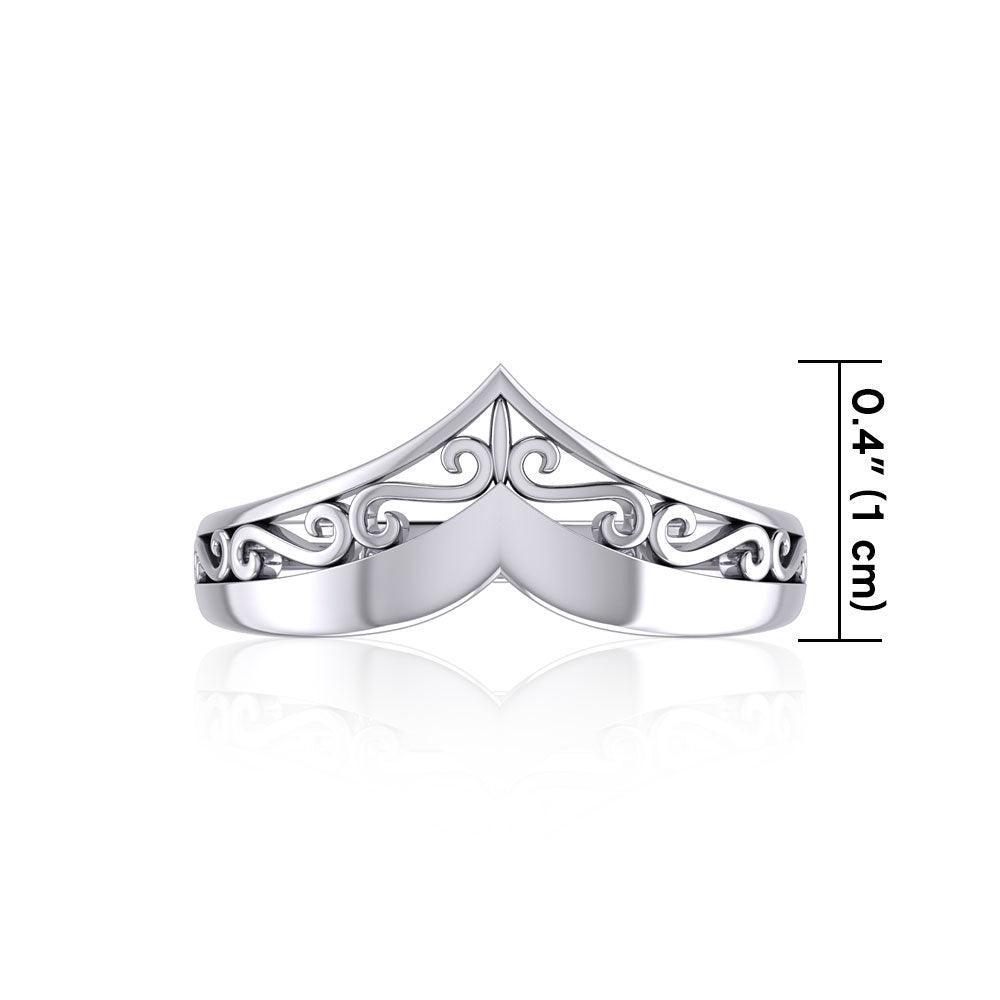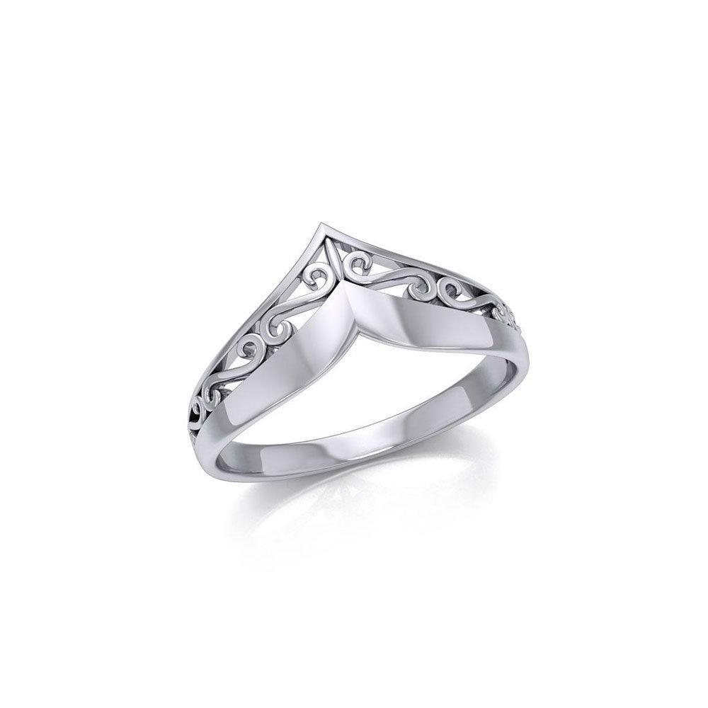 This magnificent design in sterling silver by Peter Stone combines the ancient and powerful message of eternity with a regal silhouette to create a Celtic Knotwork filigree ring that speaks of elegance and clarity.