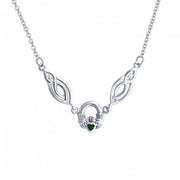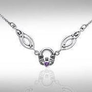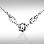 A traditional token loyalty, friendship, and romantic love ~ Celtic Knotwork Claddagh Sterling Silver Necklace Jewelry with Gemstone TNC082