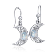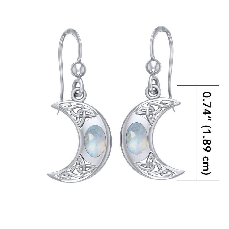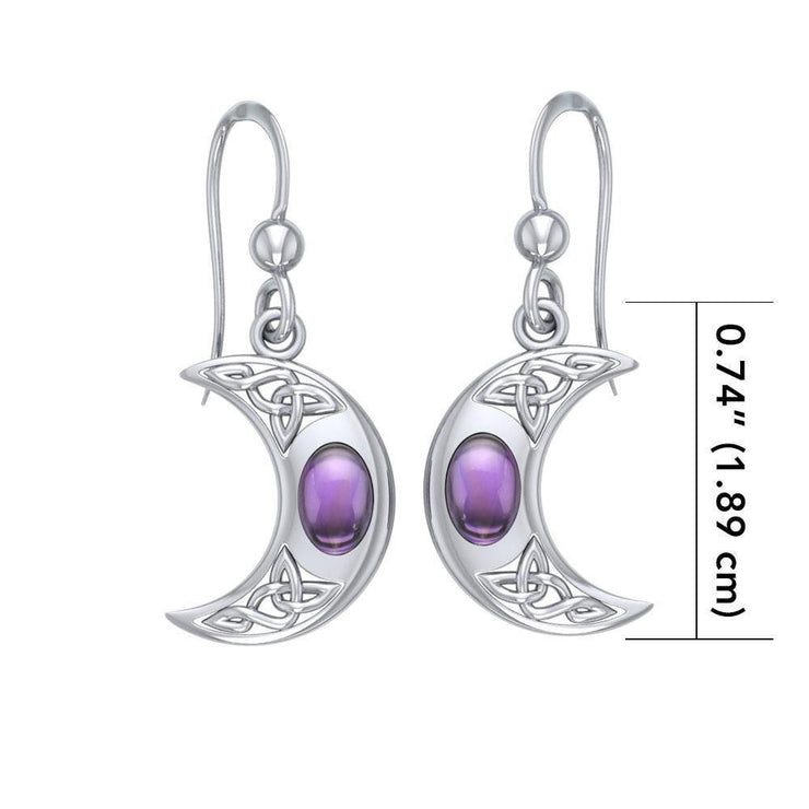 The beginning of a beautiful breakthrough ~ Celtic Knotwork Crescent Moon Sterling Silver Hook Earrings with Gemstone TER147