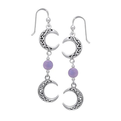 Celtic Knotwork Silver Crescent Moon Earrings TER149The crescent moon, a powerful symbol of the divine feminine, speaks of the connection between the spiritual and earthly realms. The Celtic Knotwork worked into the design adds a hint of eternity to this already powerful image. These Celtic Knotwork Crescent Moon earrings designed in sterling silver by Peter Stone's finest craftsmen beautifully combine two powerful elements into a single enduring message of connection.