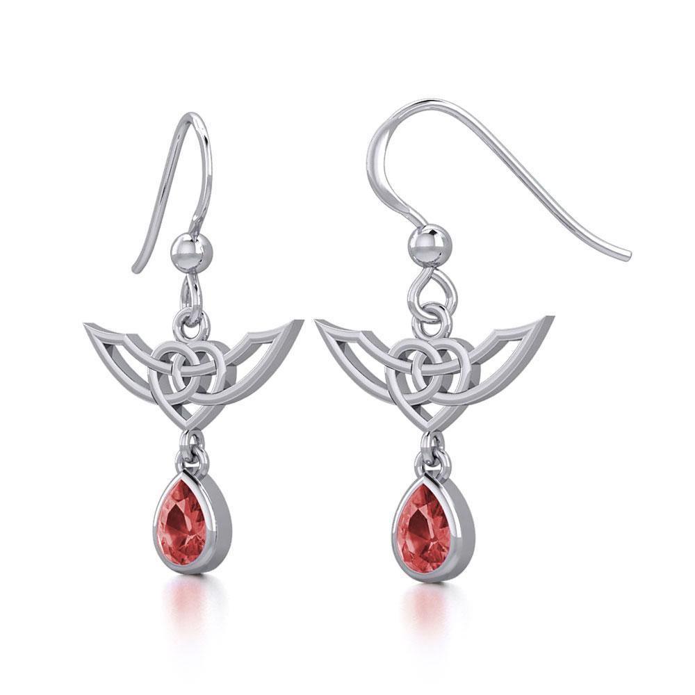 Celtic Knotwork Silver Earrings with Dangling Gemstone TER1933