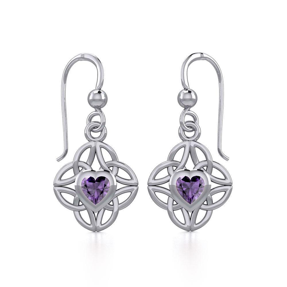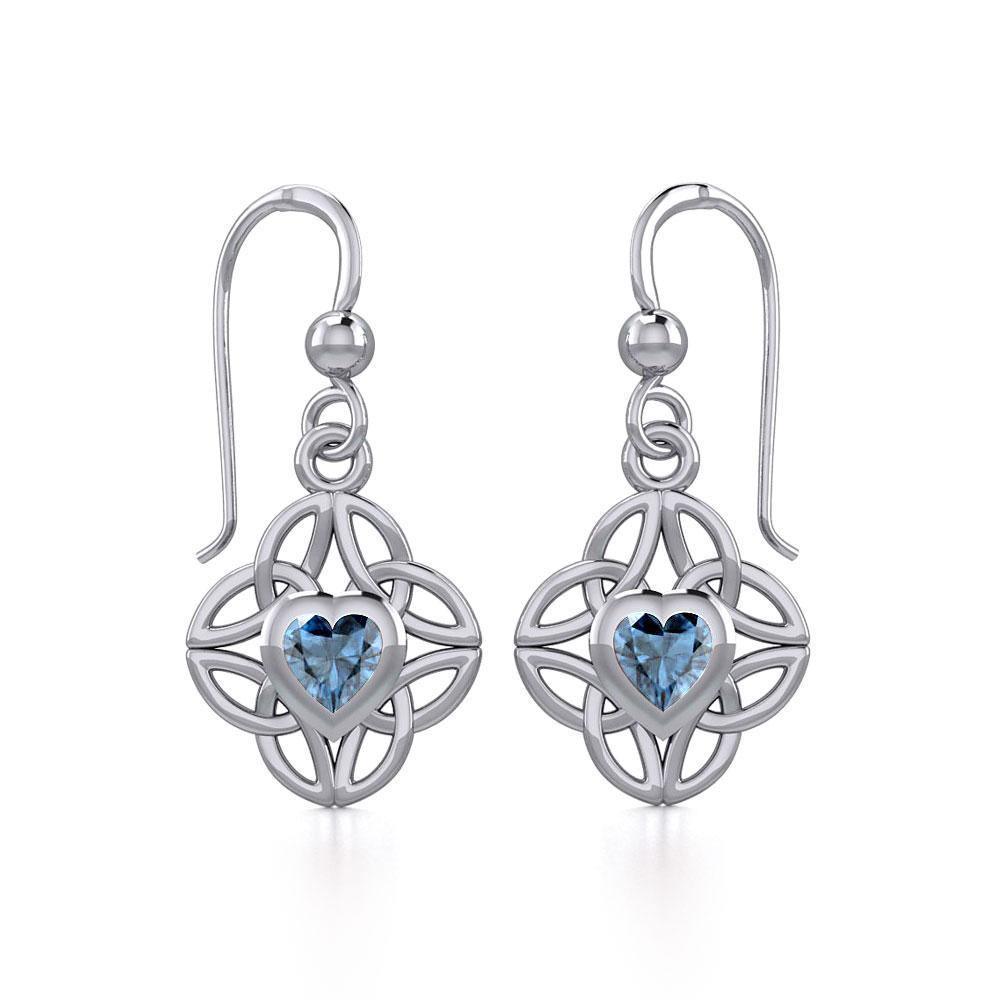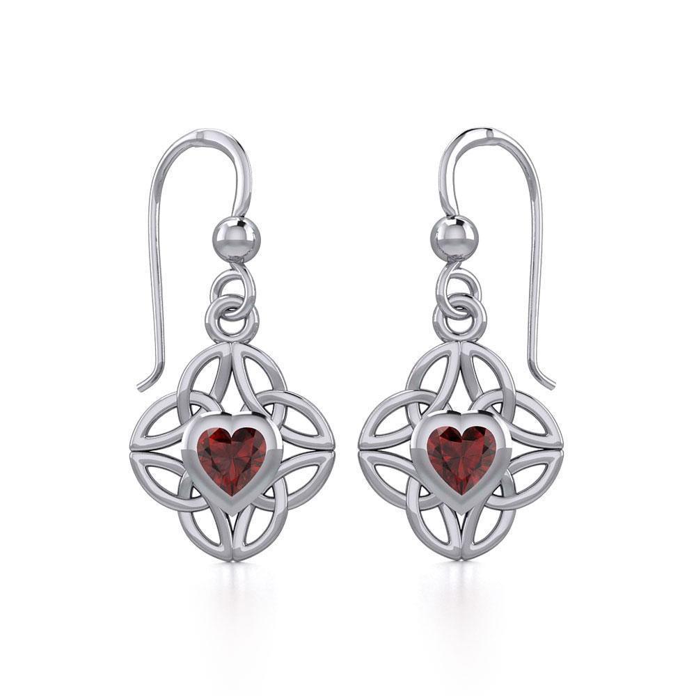 Celtic Knotwork Silver Earrings with Heart Gemstone TER1845
