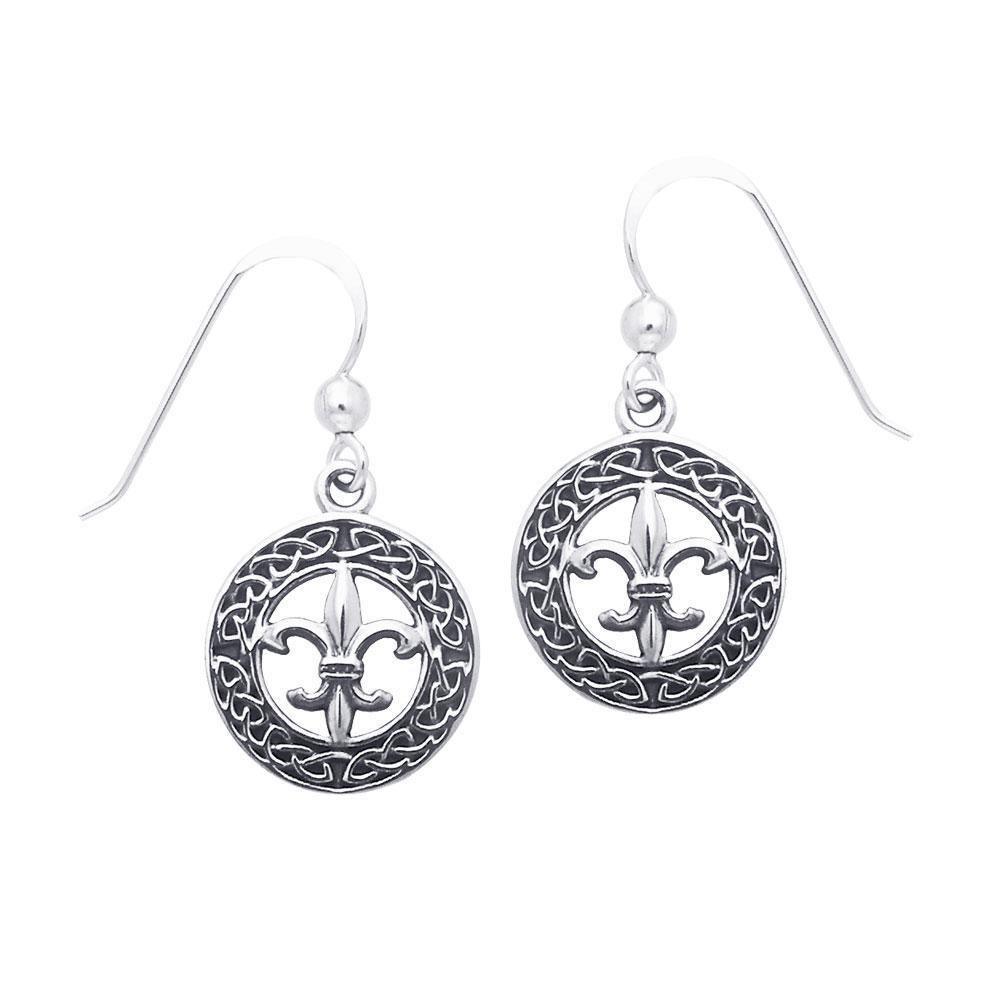 Fit for a queen in Celtic Knotwork Fleur-de-Lis Sterling Silver Hook Earrings TER113