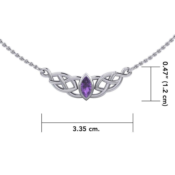 Celtic Knotwork is characterized by the "endless knot" with no beginning or end, and represents eternity in all its glory. Incorporated into Celtic art for millennia, the Celtic Knot has become distinctly recognizable for its interconnectedness and appears in myriad forms and designs, each one more compelling than the last. This intricate and unusual Celtic Knotwork necklace in striking sterling silver with gemstone accent is a powerful reminder of the fullness of the eternal.