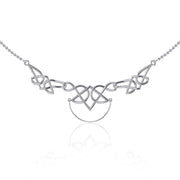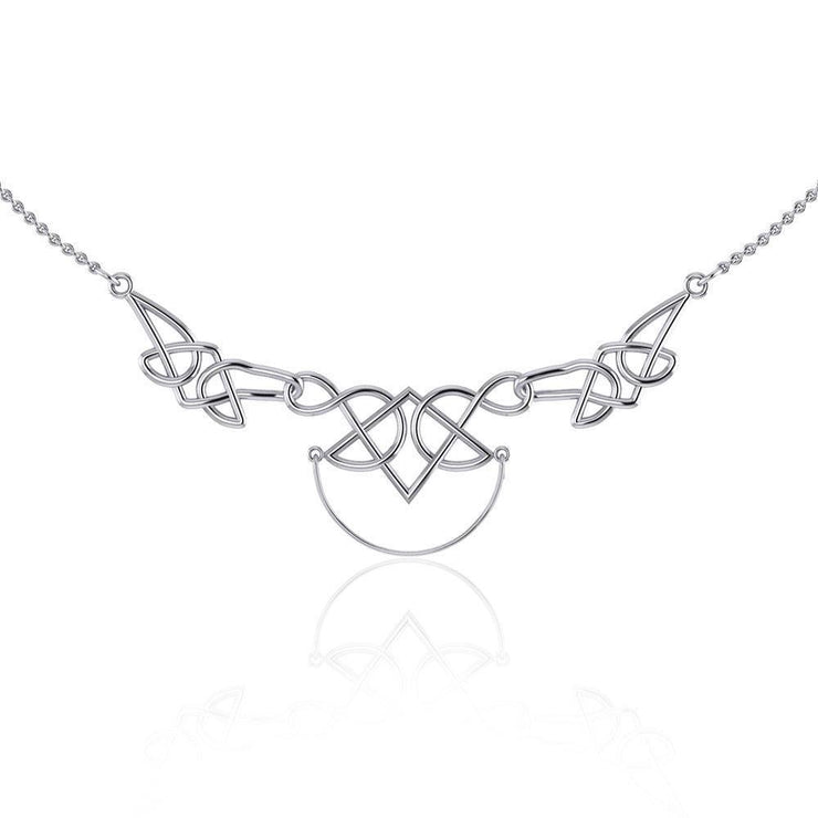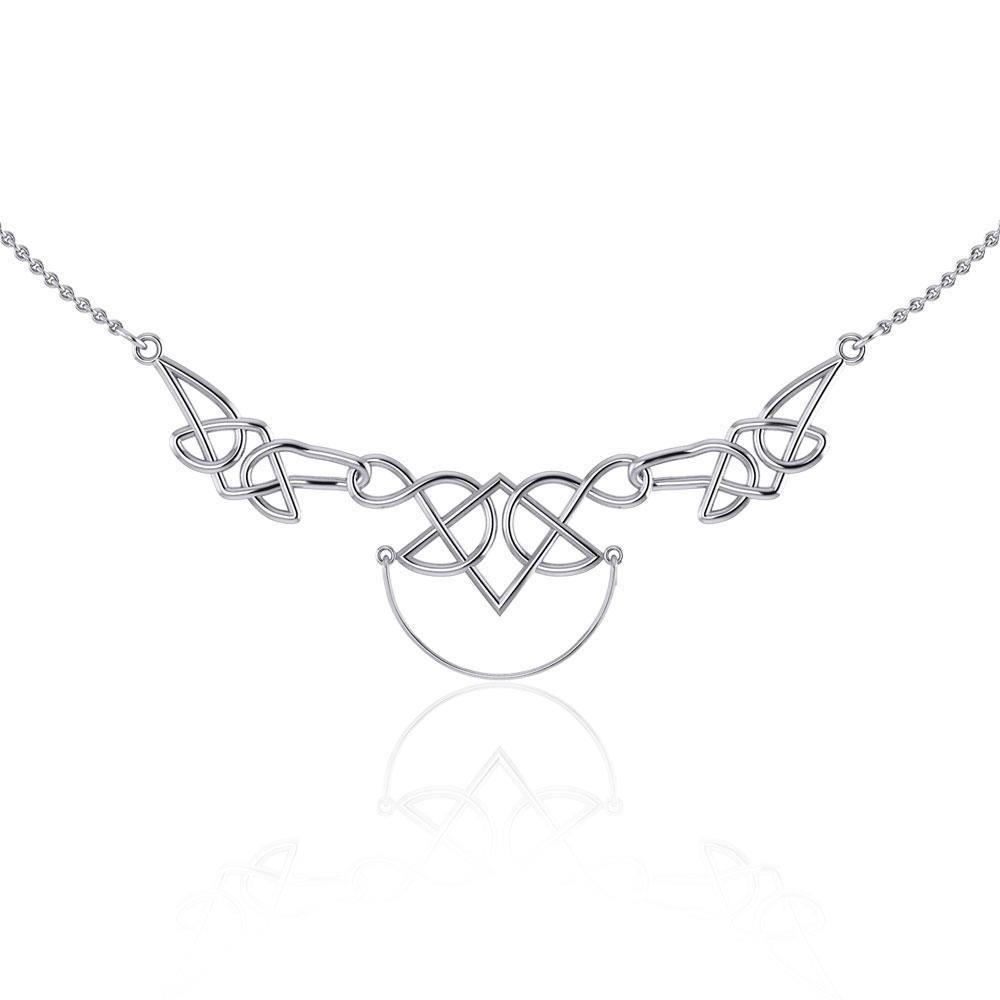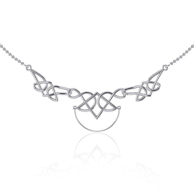 Beyond words, Celtic knots are the most recognizable artwork in Celtic history. They are mystic knots. Endless. Celtic Knots remind us of the timeless nature of our spirit inspired in this unique sterling silver necklace of Peter Stone Jewelry with a striking charm holder. The knots are overlapped and interwoven with no definitive beginning or end. The points interweave to connect the spiritual and physical representing the closest of all connections. The Celts called this style “pure”, and it symbolized the way in which they choose to live their lives - to accentuate the interconnectedness of all of life and the eternal.