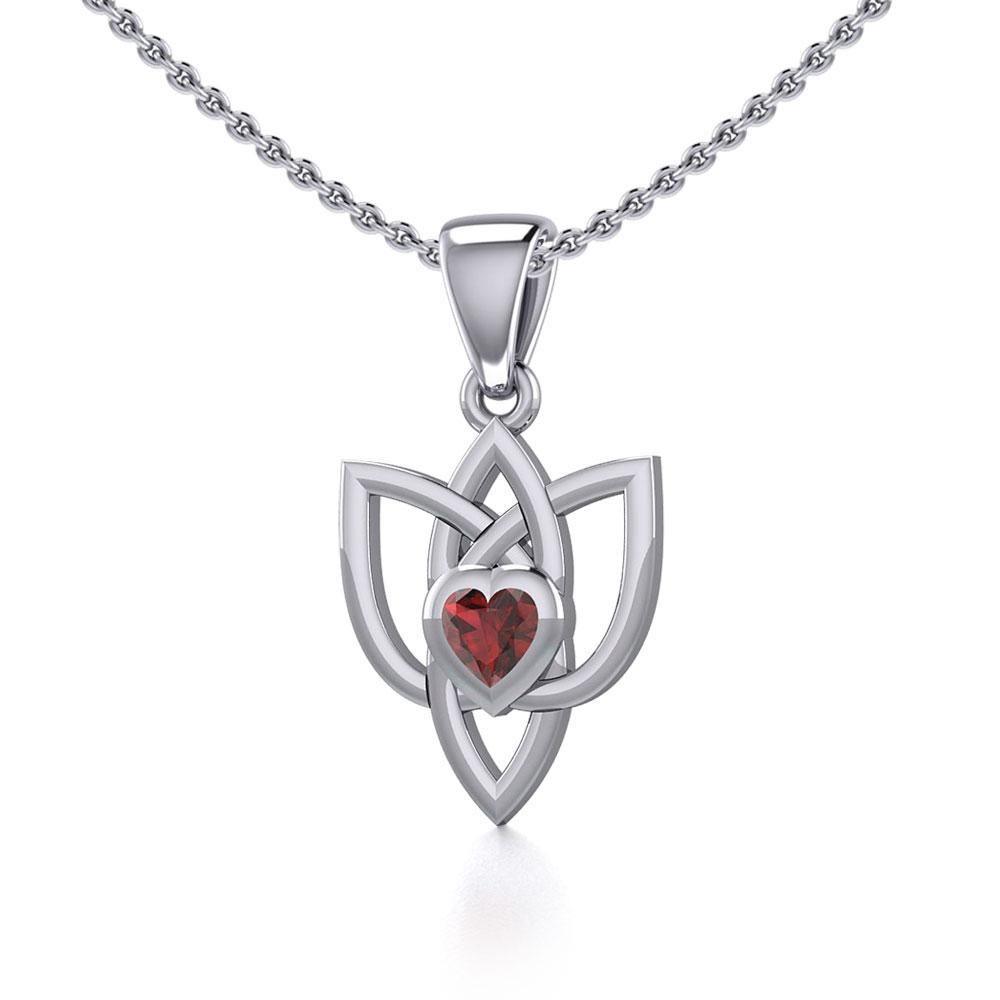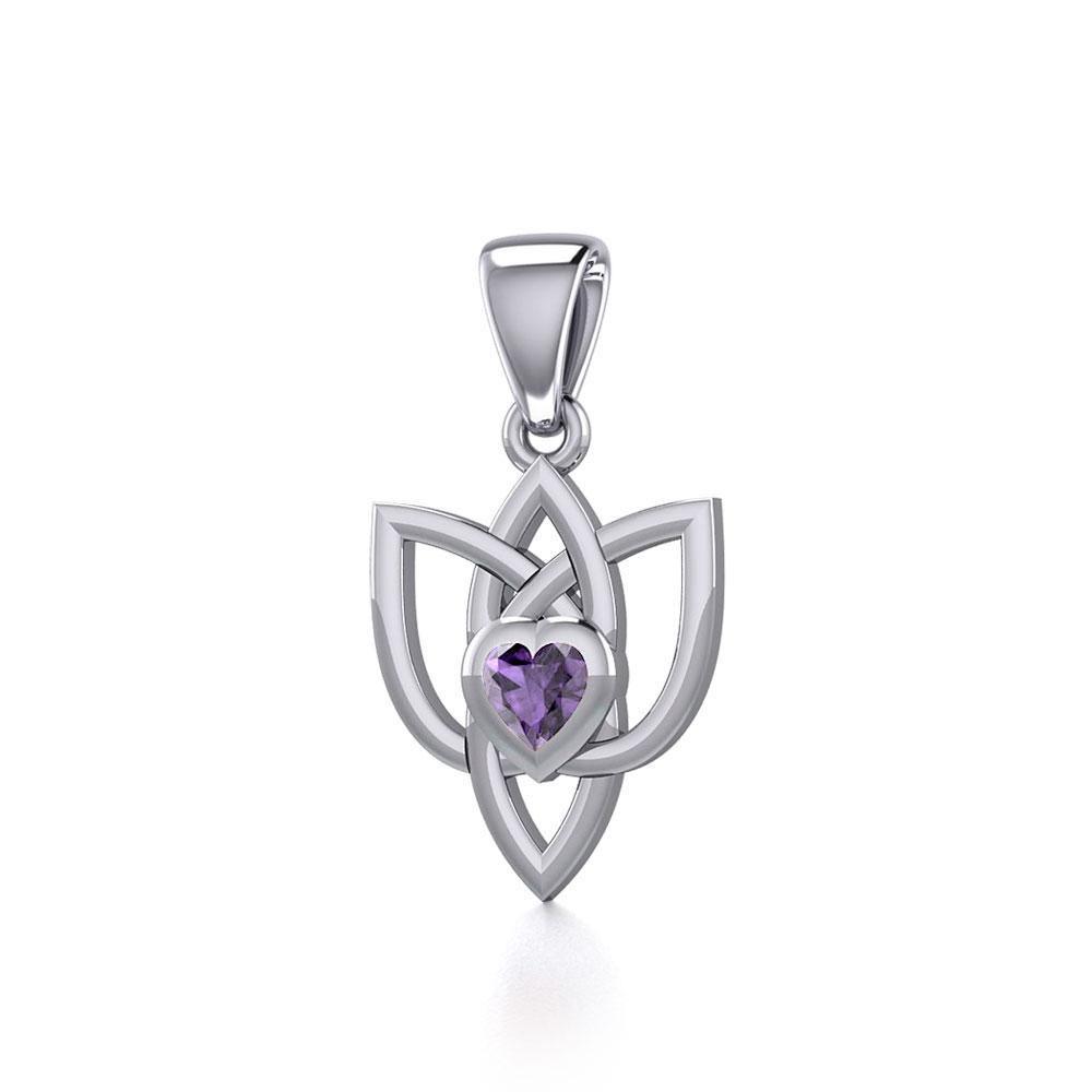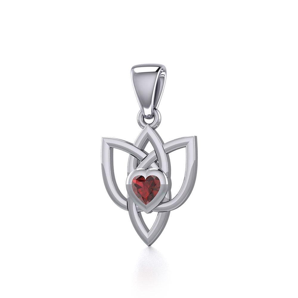 Celtic Knotwork Silver Pendant with Heart Gemstone TPD5354