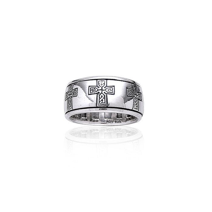 Celtic Knotwork Sterling Silver Cross Spinner Ring TR3779