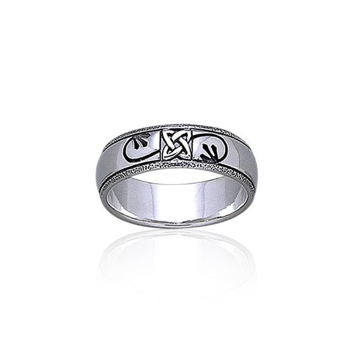 This simply designed sterling silver band by Peter Stone features a beautiful Celtic Knot to remind us of the compelling power of the endless universe.
