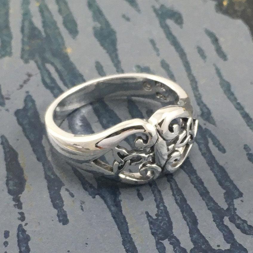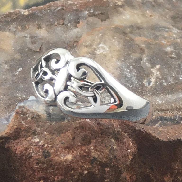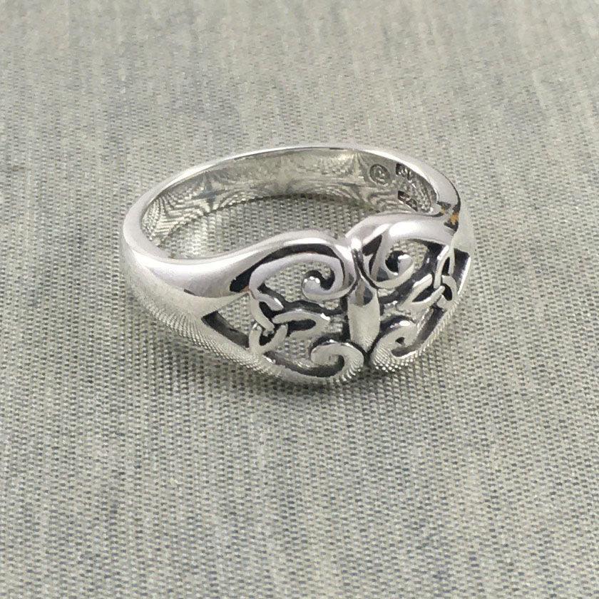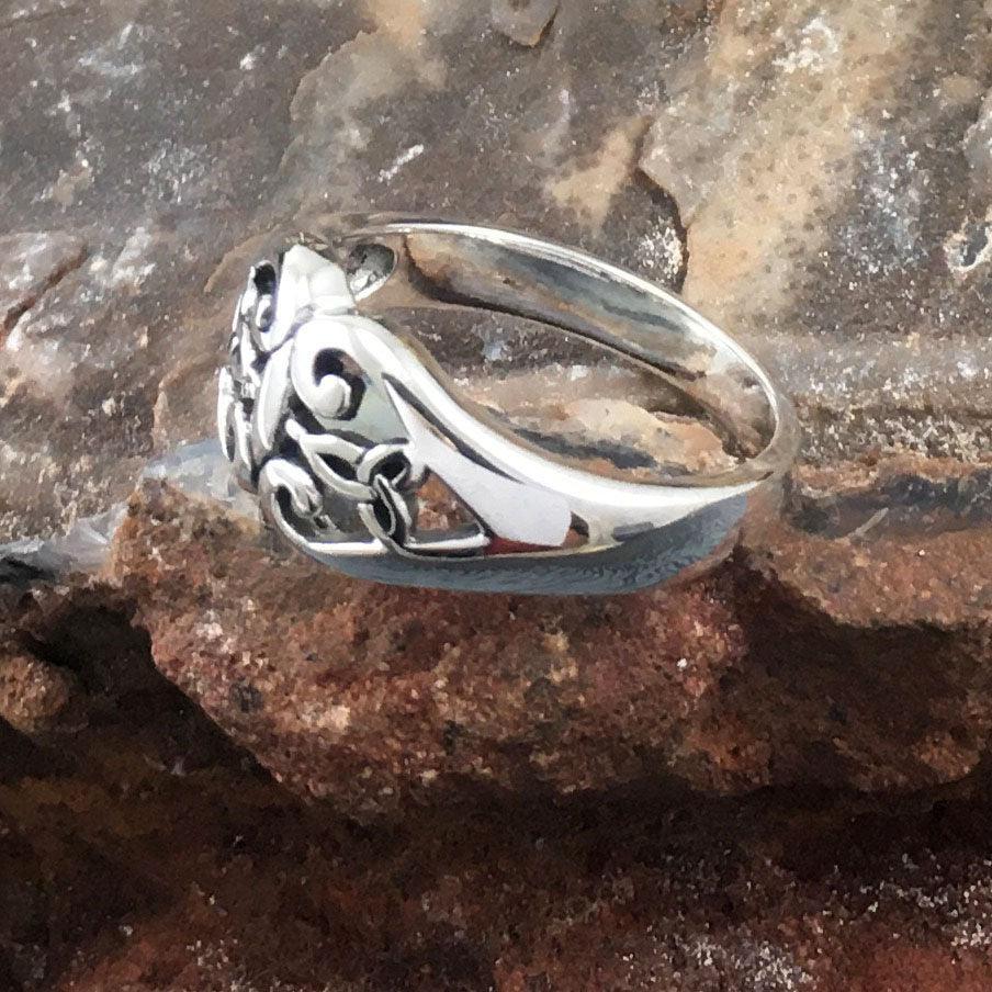 This openwork sterling silver Triquetra ring by Peter Stone is a great way to honor the concept of trinity.