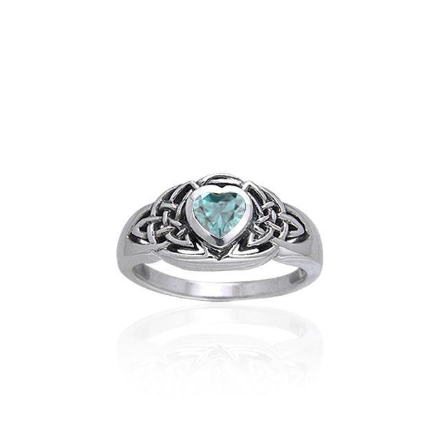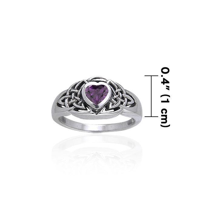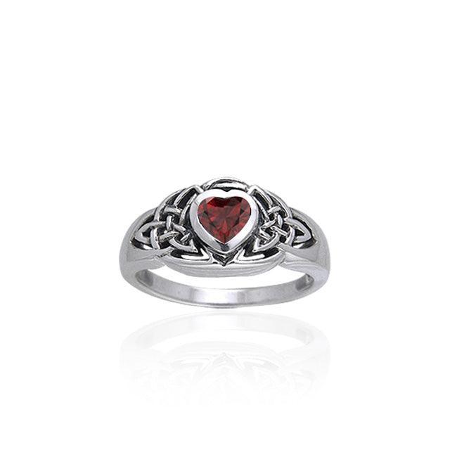 This eye-catching Celtic Knotwork ring in striking sterling silver with a heartshaped gemstone centerpiece is a powerful reminder of the fullness of the eternal.