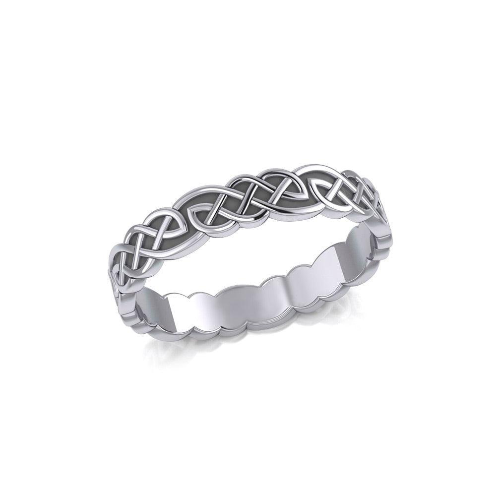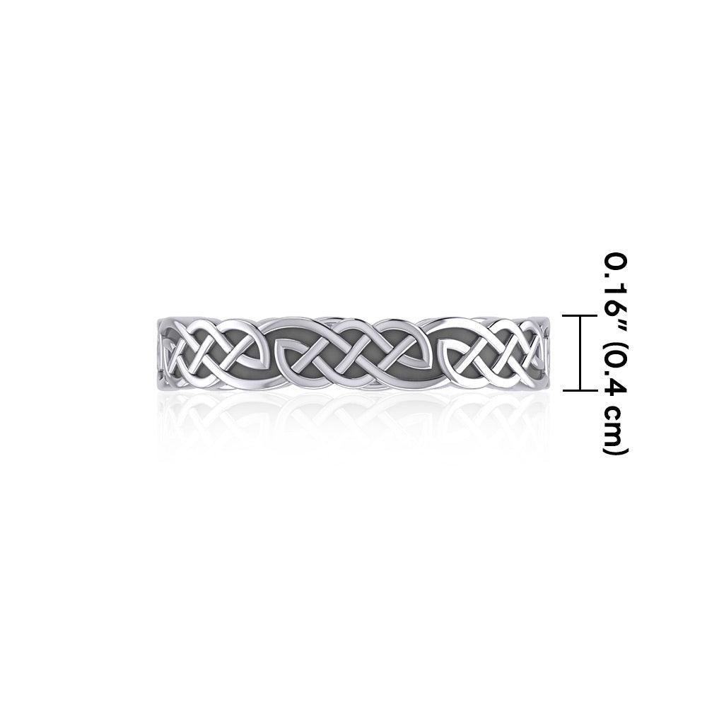 This solid interwoven Celtic Knotwork band by Peter Stone in striking sterling silver is a powerful reminder of the richness of the eternal.