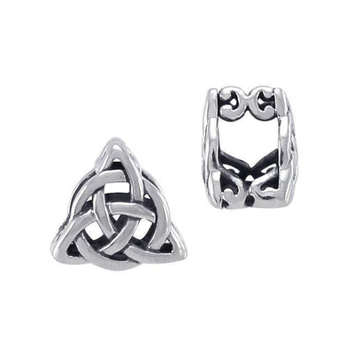 Peter Stone combines a simple design framed with a symbolic representation in this sterling silver bead that blends in the powerful message of Trinity. Of Latin origin, Triquetra represents the triplicities that surround us (Earth, Sea, Sky; Birth, Death, Rebirth) and symbolizes the eternal spiritual life. The symbol manifests on rocks throughout the Celtic region associated with the three elements of nature – water, earth, and air.