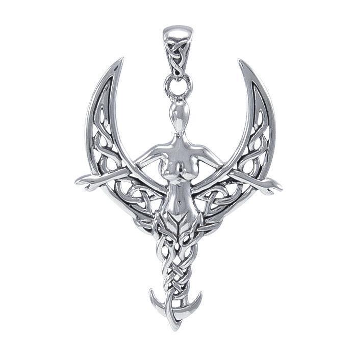 Adorned with intricate Celtic Knotwork, this sterling silver Goddess casts her lunar energies, blessing all who see it.
