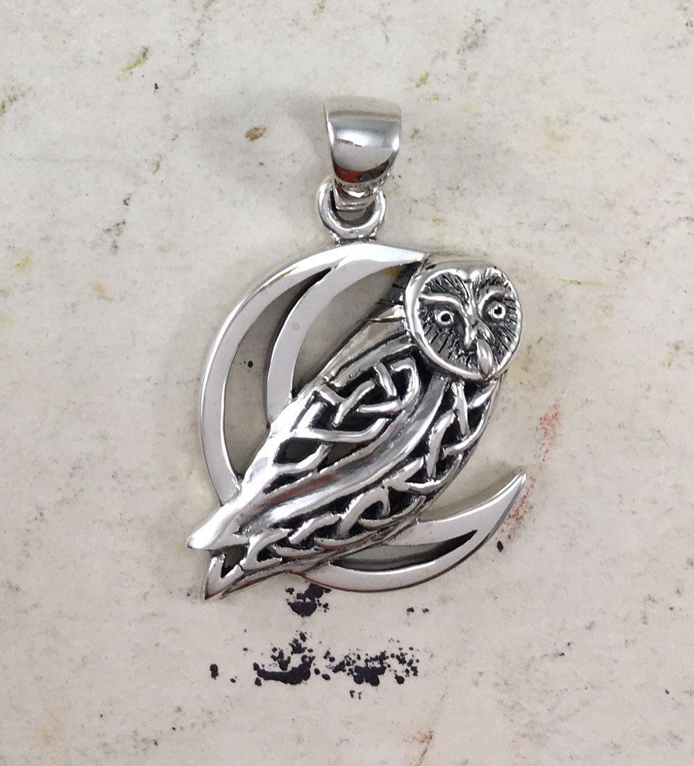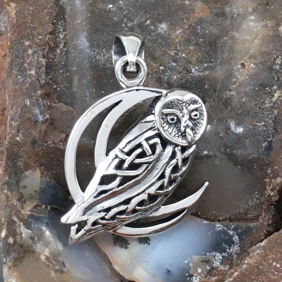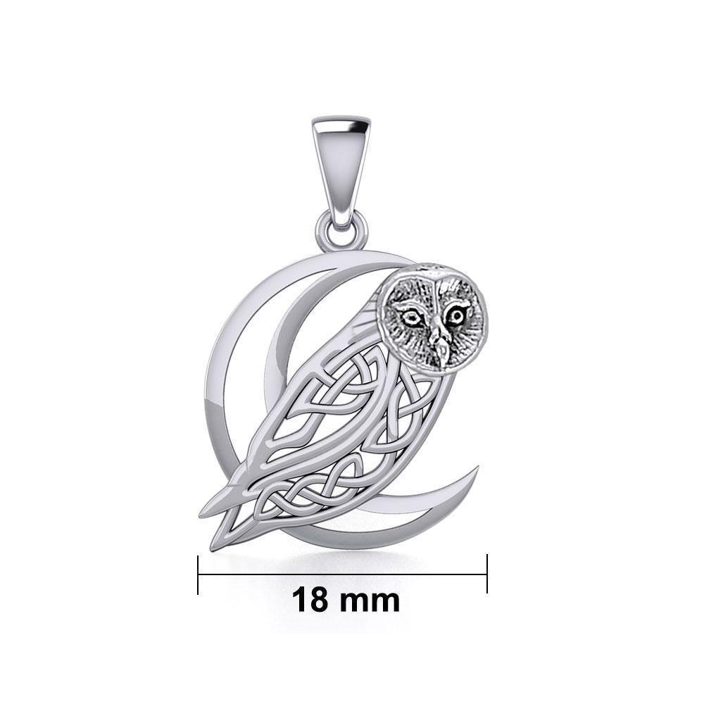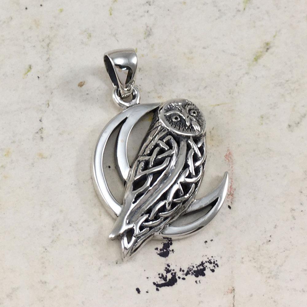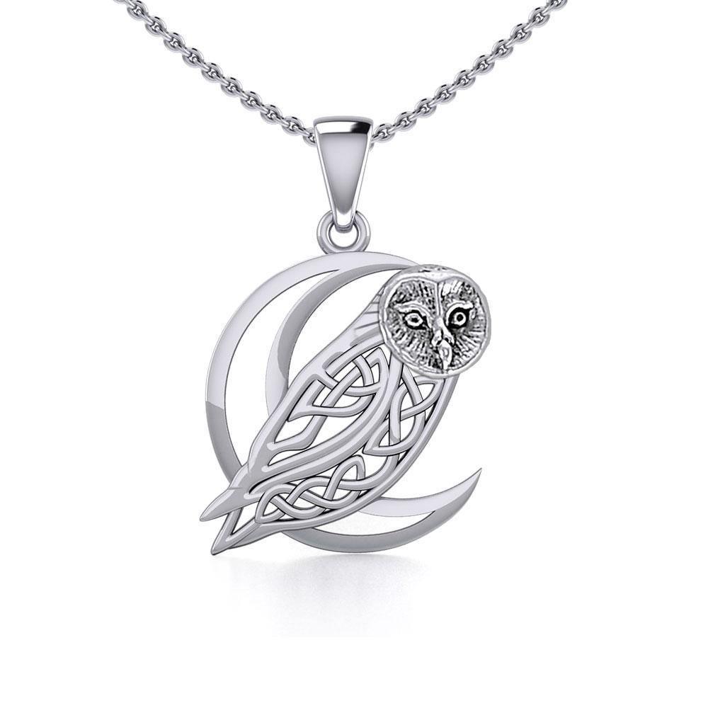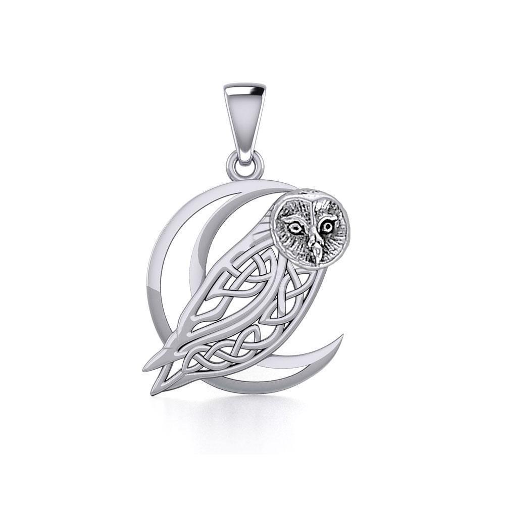 Celtic Owl on Crescent Moon Silver Pendant TPD5714