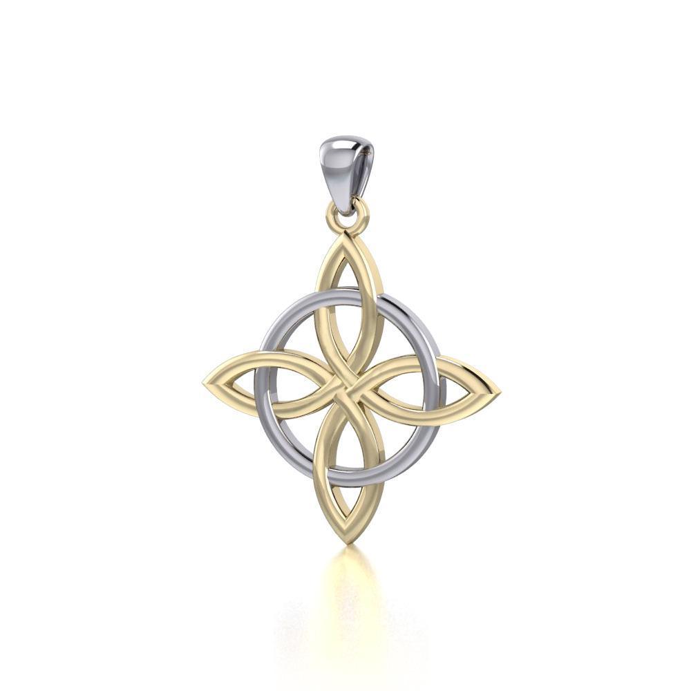 Celtic Quaternary Knot Silver and 14K Gold Accent Pendant TPV554
