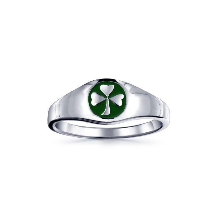 Shamrock Sterling Silver Ring with Green Enamel TR3686