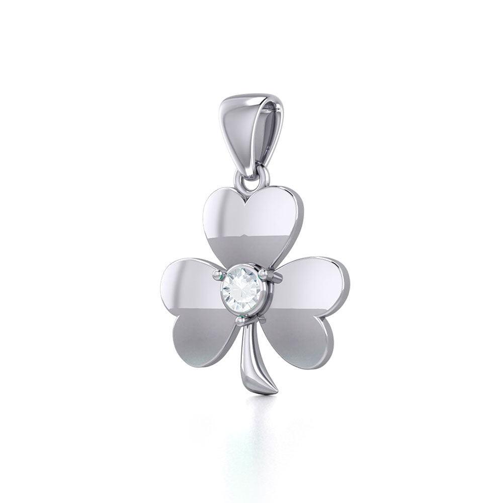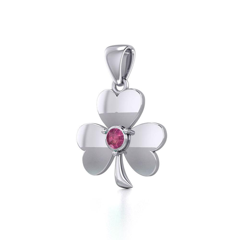 Celtic Shamrock Silver Pendant with Birthstone TP3104
