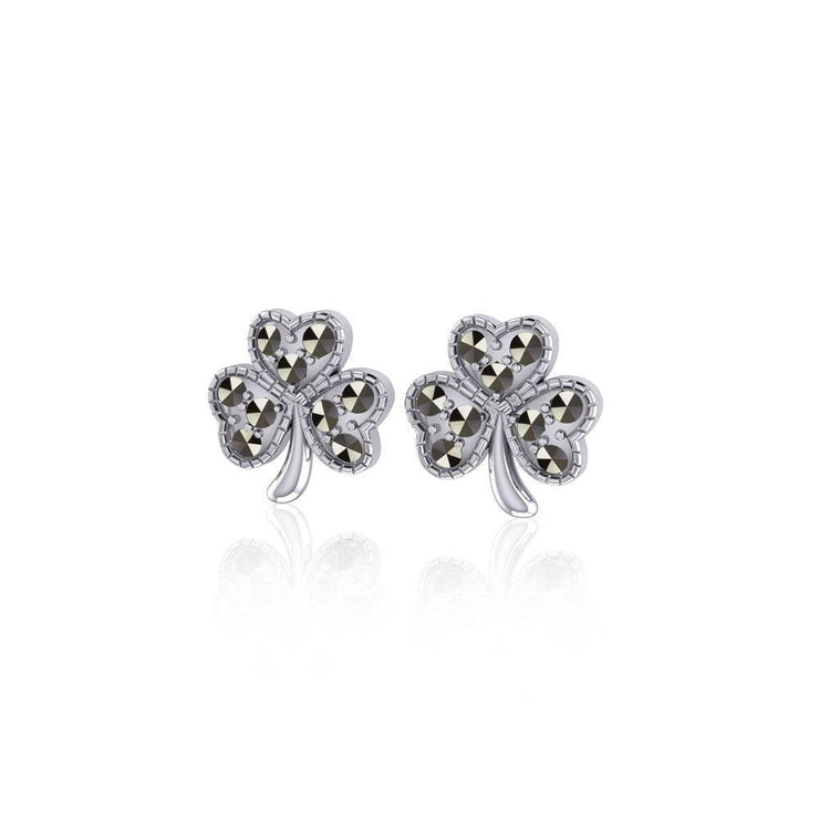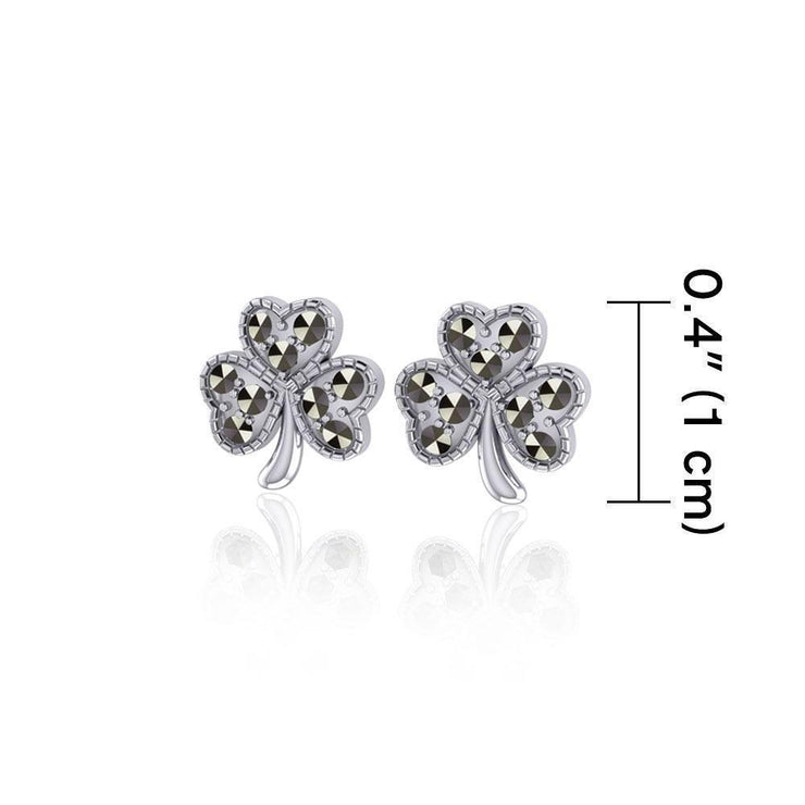 Shamrock Sterling Silver Post Earrings With Marcasite TE880