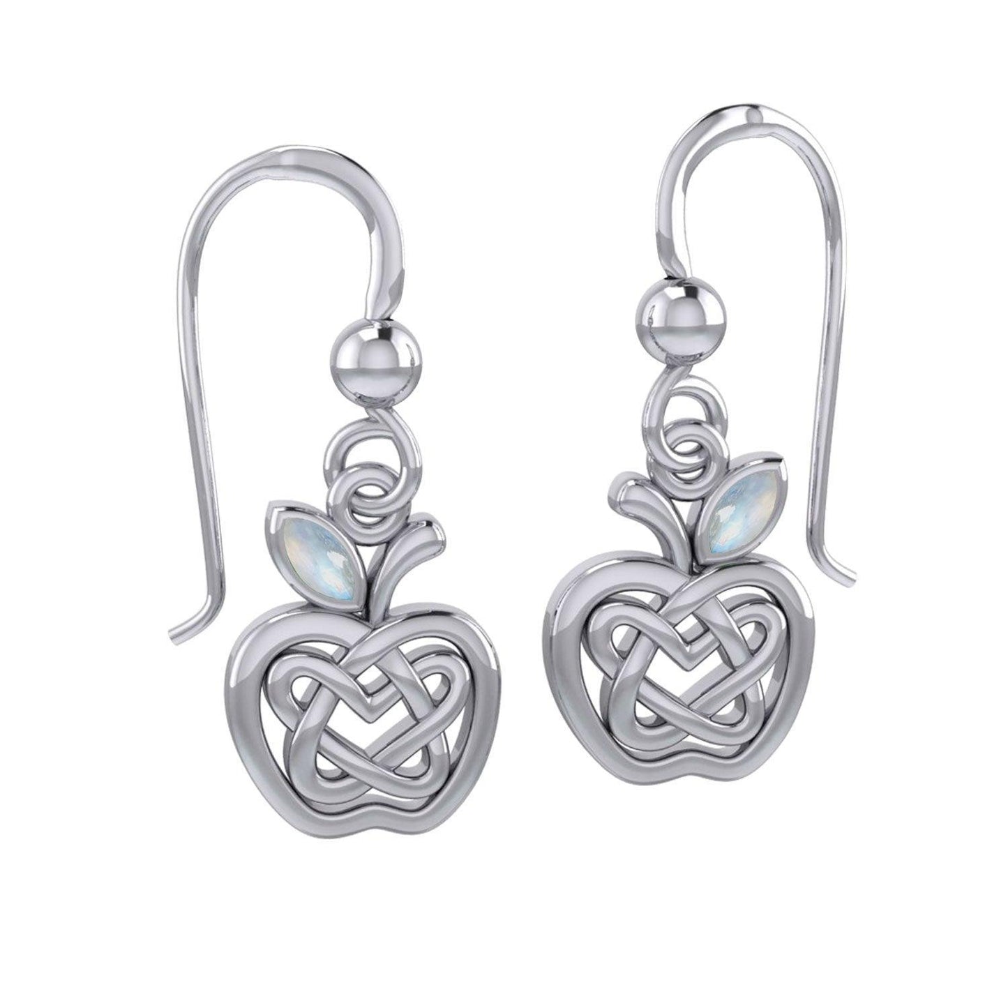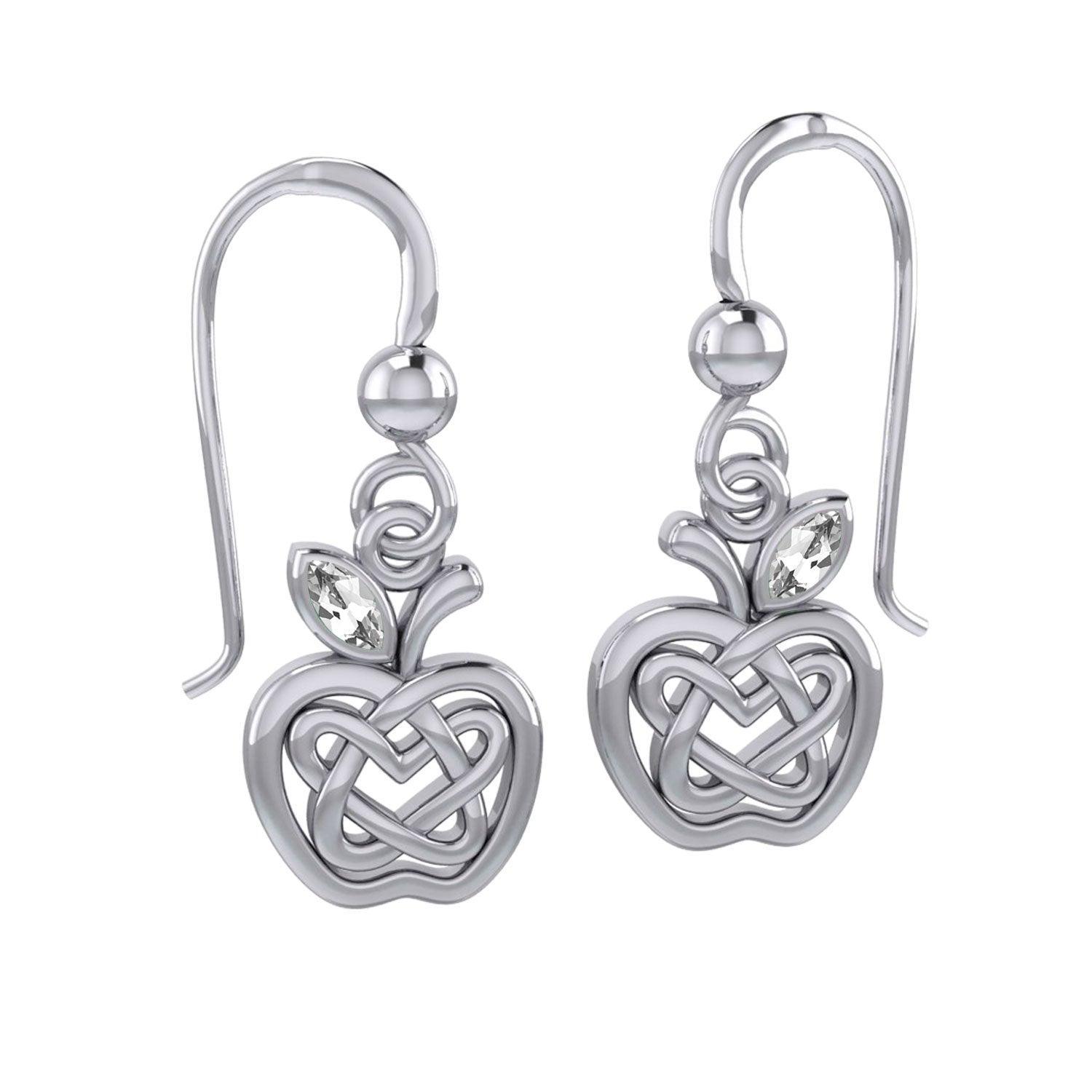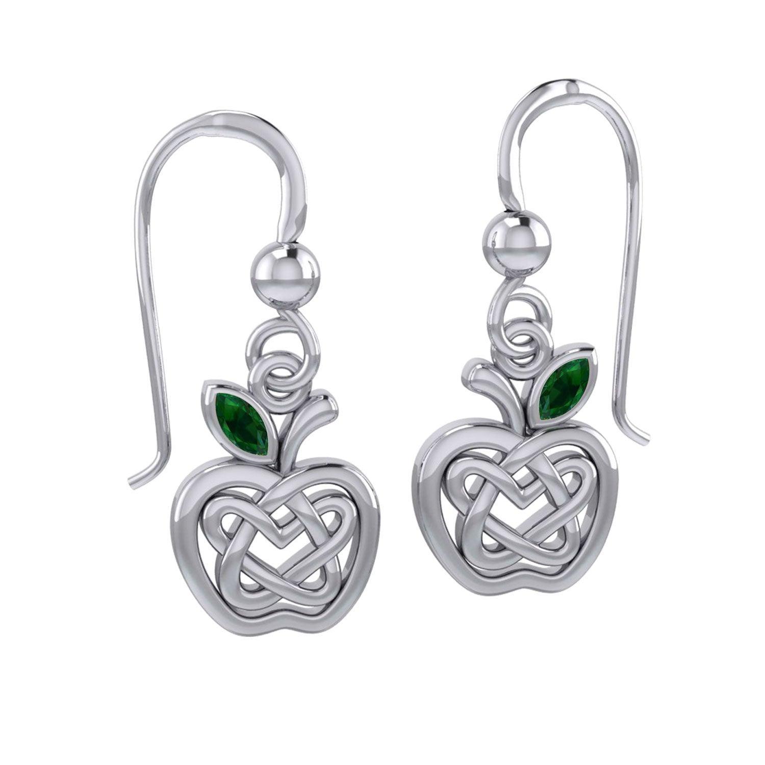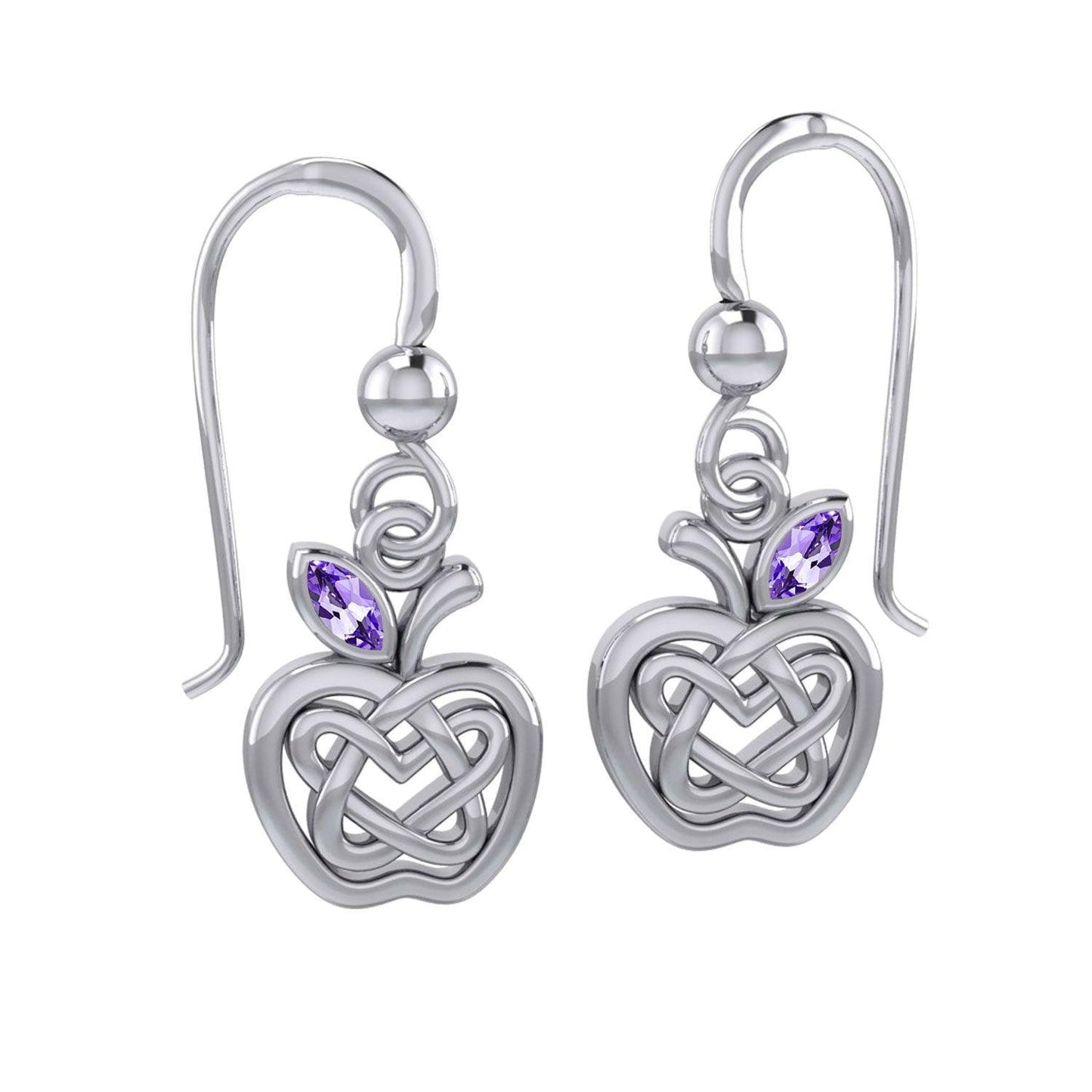 Celtic Spiritual Fruit Apple with Double Heart Sterling Silver Earrings with Gemstone TER2235