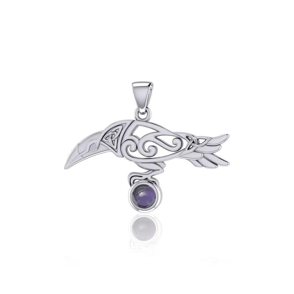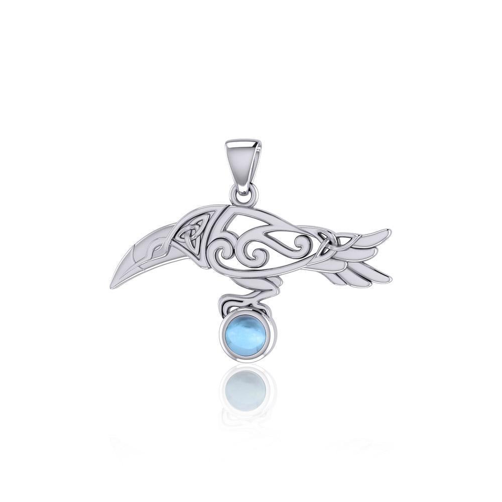 Celtic Spirit Raven with Gemstone Silver Pendant TPD5252