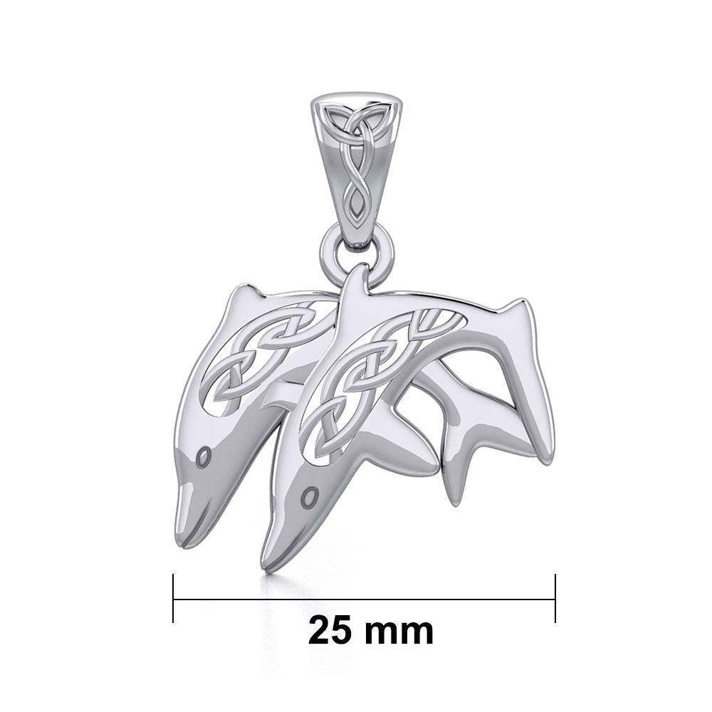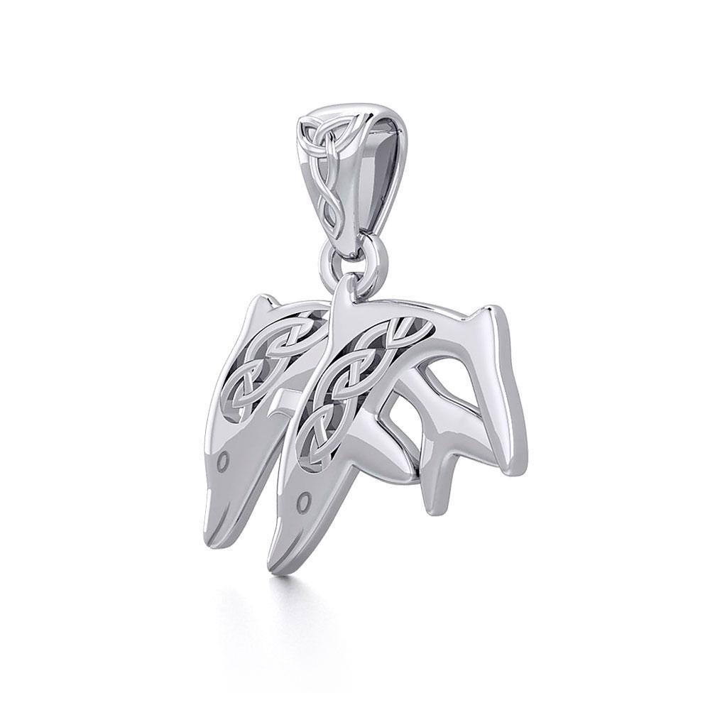Celtic Swimming Dolphins Silver Pendant TPD5701