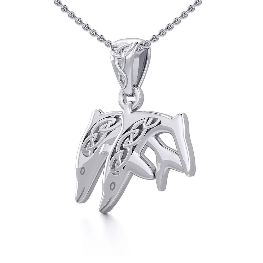 Meticulously crafted from fine sterling silver, the Celtic Swimming Dolphins Silver Pendant is a stunning way to capture the intelligence, grace, and beauty of the dolphin.