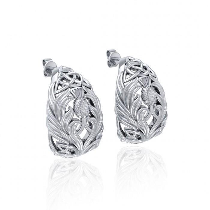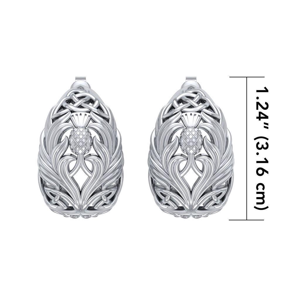Throughout Celtic regions, thistle represents bravery, devotion, durability, strength, and determination celebrated in this sterling silver post earrings of Peter Stone Jewelry. Peter Stone honors the sacred place the thistle affirms in Celtic traditions and its strong recognition all over the world. The Scottish thistle became a national symbol, giving the motto "Nemo me impune lacessit", which is translated as "What dares meddle with me?"