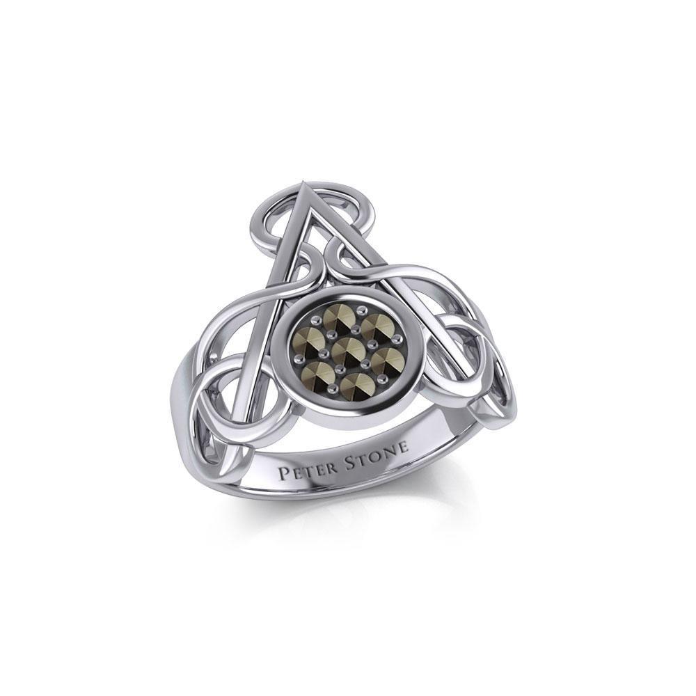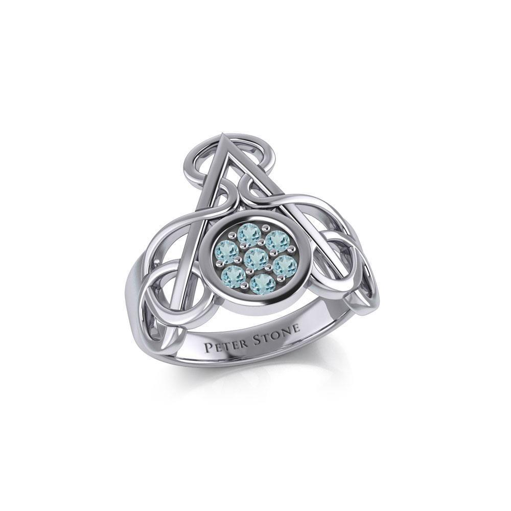 Celtic Triangle Knotwork Silver Ring with Gemstones TRI1950