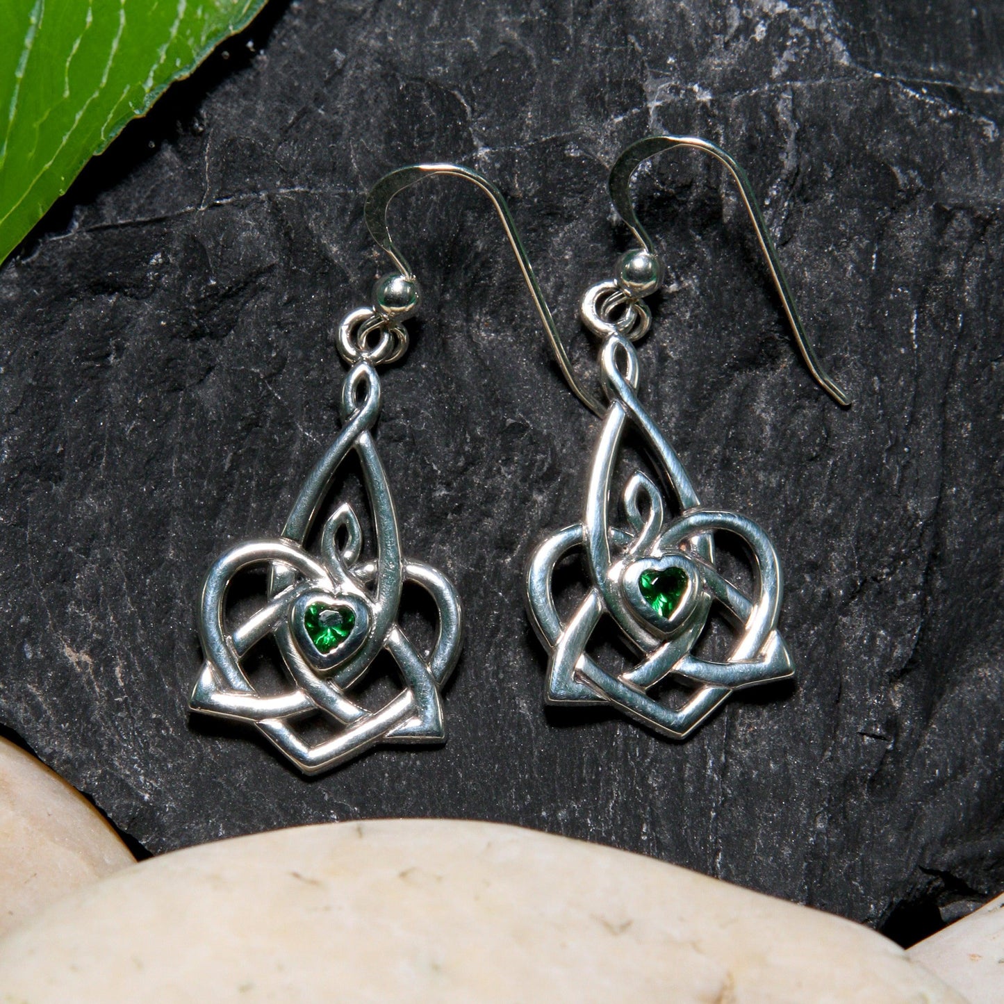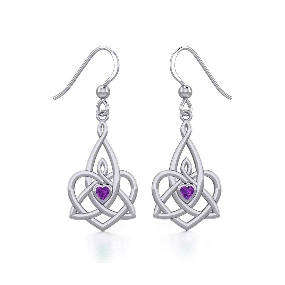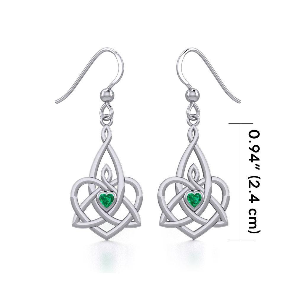 Celtic Motherhood Triquetra or Trinity Heart Silver Earrings With Gem TER1949