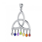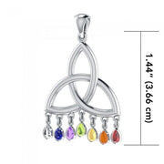 Peter Stone combines a simple design framed with a symbolic representation in this sterling silver pendant that blends in the powerful message of Trinity adorned with Chakra gemstones.