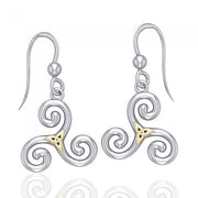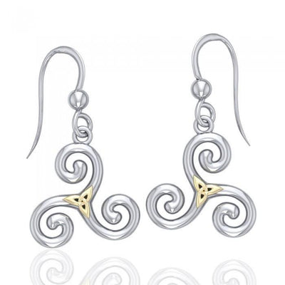 The road to eternal life ~ Celtic Celtic Triskele or Triskelion Sterling Silver with 18K Gold Accent Dangle Earrings MER709