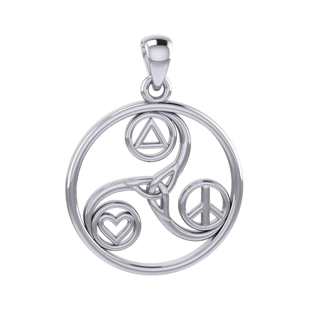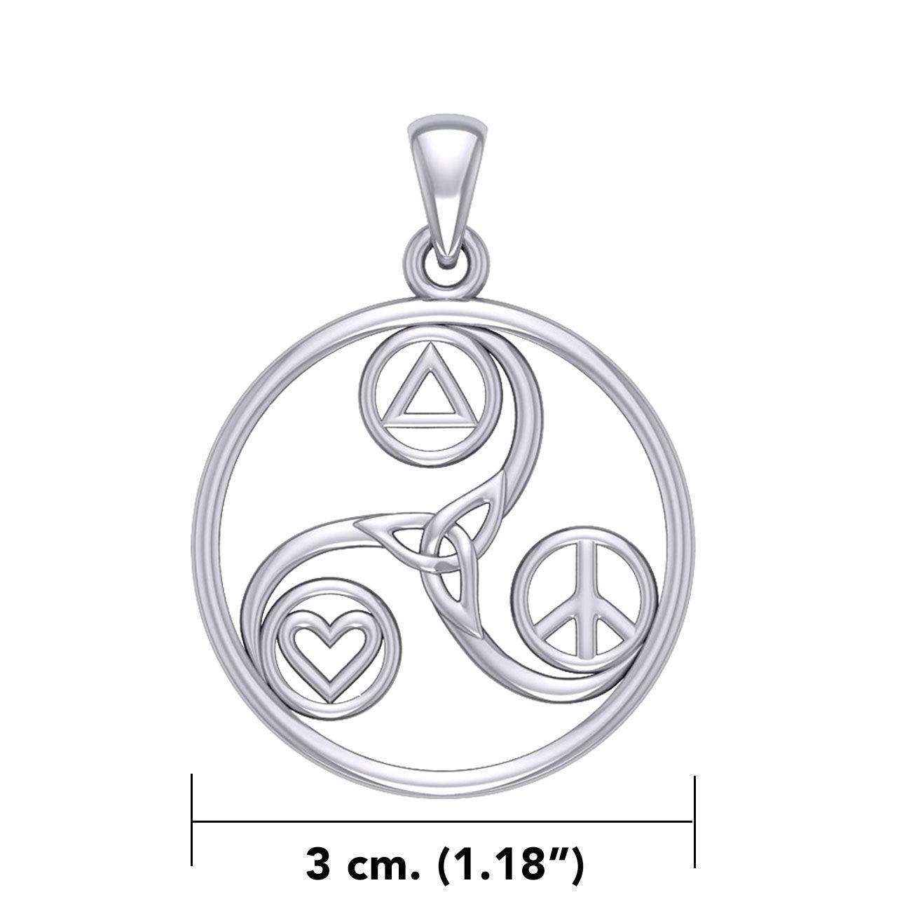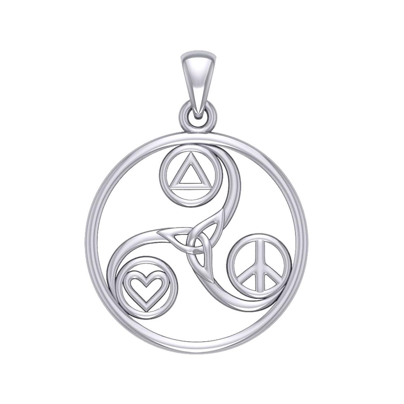 Celtic Triskele with Peace Heart and Recovery Symbols Silver Pendant TPD7016